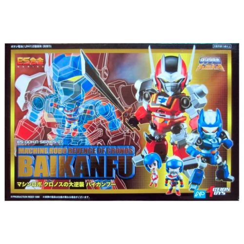 ES Gokin (ES合金) is a joint collaboration toy line produced/manufactured by Hong Kong Action Toys and licensing/distributed by Japanese toy company Art Storm. The line consists of SD (Super Deformed) Die-Cast robots which mainly focuses on mechas. It was first introduced and released in the year 2009. Though the line is in the SD family, Action Toys/Art Storm has made each robot (released so far) differ in size to make it look realistic. One of the selling points of the figures/robots is the articulation design. Despite it having limited mobility, they are still considered rather flexible enough to evoke some of the memorable moves and attacks seen in each of the robots respective series. Each of these figure/robots come with a stand and some of them even have neat featuring gimmicks implemented in them. Though the ES Gokin are SD’s, it is targeted to a mature demographic.