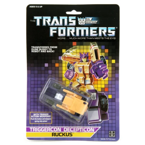 Transformers: Generation 1 (also known as Generation One or G1) is a children’s toy line that ran from 1984 to 1992 and was produced by Hasbro. It was a line of toy robots that could change into an alternate form (vehicles such as cars and planes, miniature guns or cassettes, monsters, and even dinosaurs) by moving parts into other places, and it was the first line of toys produced for the successful Transformers toy and entertainment franchise. The line was originally called The Transformers, with “Generation 1” originating as a term coined by fans of the toys when the Transformers: Generation 2 toy line was released in 1992. Hasbro eventually adopted the term “Generation 1” to refer to any toy produced in that era.