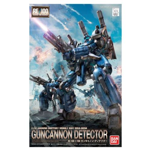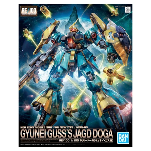In September 2014, Bandai introduced the Reborn-One Hundred (RE/100) line. This 1:100 scale line consists of models that are too large, too obscure, or too costly to produce into the MG line. As such, the kits lack the inner frame and detail level of MG, but offer articulation levels equal to or better than 1:144 scale HG kits.
