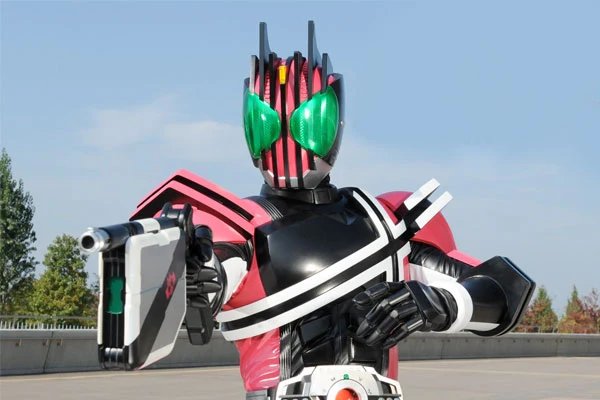 Kamen Rider Decade (仮面ライダーディケイド Kamen Raidā Dikeido, Masked Rider DCD, Masked Rider Decade) is the title of the first of the 2009 editions of the long-running Kamen Rider Series of tokusatsu dramas. Decade, as its title suggests, is the tenth of the Heisei Rider Series, having begun with Kamen Rider Kuuga in 2000. It began broadcast the week following the finale of Kamen Rider Kiva and is featured in Super Hero Time alongside the 2009 edition of the Super Sentai Series, Samurai Sentai Shinkenger. The series ties in with the arcade game Kamen Rider Battle: Ganbaride, with Kamen Riders Decade and Diend using cards resembling those used in the game to transform and access various weapons. Inspiration for this series was very likely to have been the fact that Toei had successfully ensured that the Kamen Rider series lasted a whole decade (2000-2009) without the show going into a period of hiatus which had always occurred since the franchise began in the 1970s. The series’ English dub aired on October 20, 2012, 5:30 p.m. at Singapore’s Okto Channel, Mediacorp.