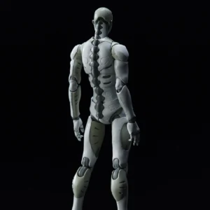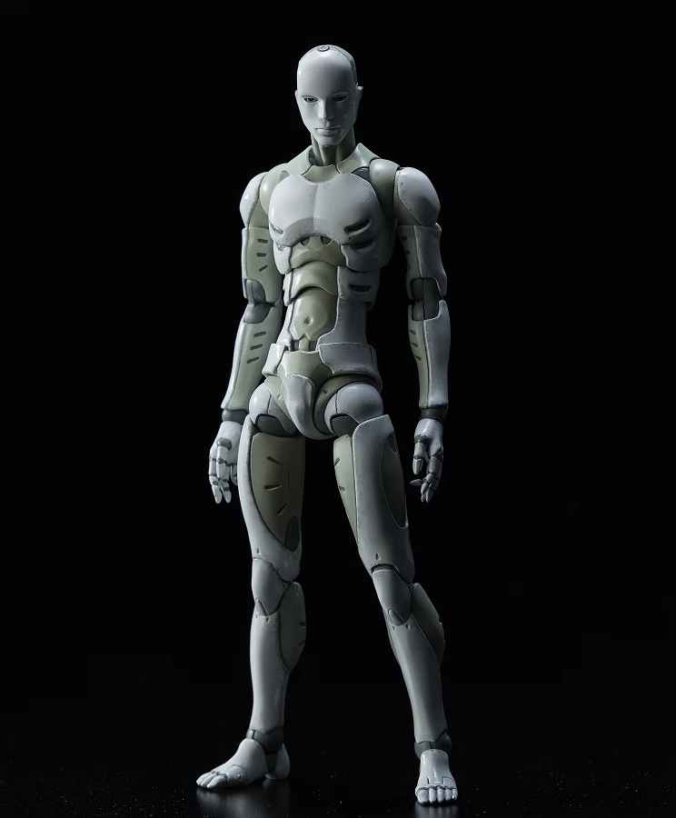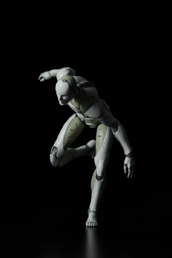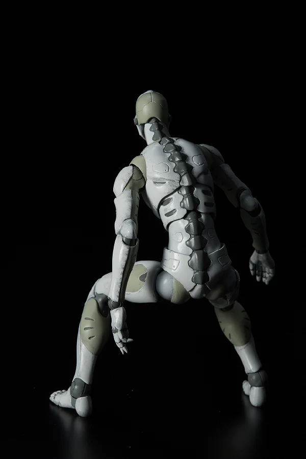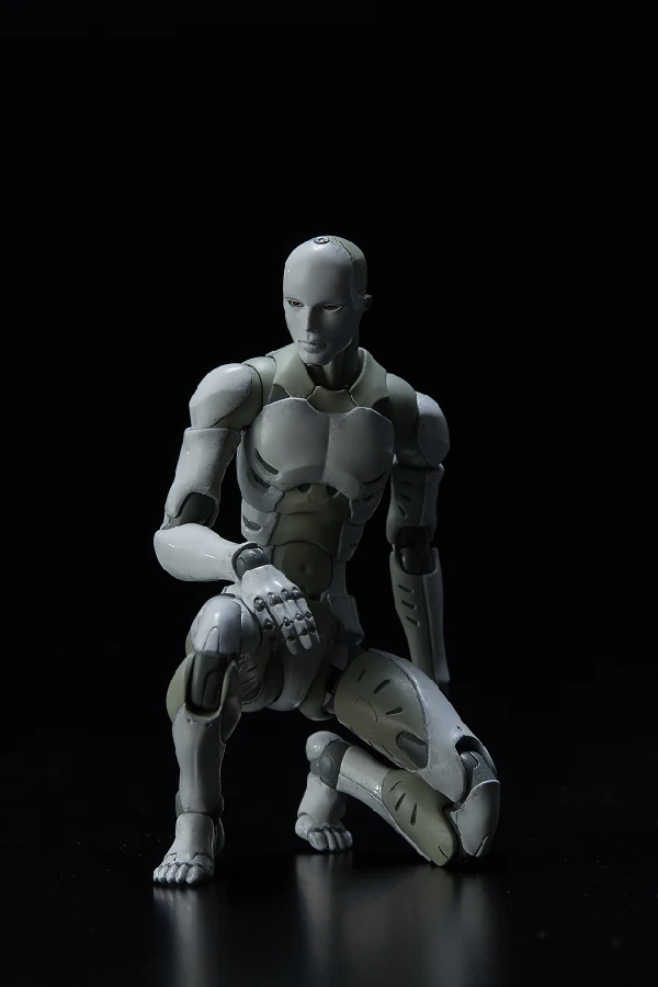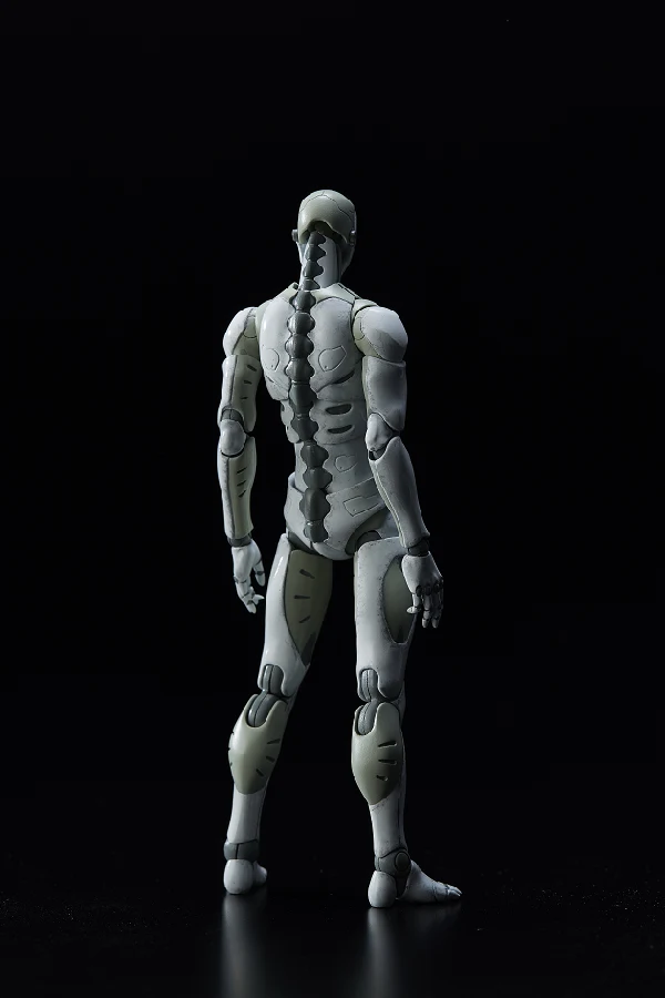 The prototype build of the male type Synthetic Human was developed by TOA Heavy Industries for special operations. The Synthetic Human will be stationed to the TOA Heavy Industries headquarters as a multi-role agent. Being able to adapt to various environments, the Synthetic Human has a very high level of combat ability. But due to being a prototype, his outer aspects are incomplete, with the facial mask being a mere shell which mimics the human face. The early stage prototype of the Synthetic Human has a self-learning A.I. installed. First time in 1/12 scale, this is not a mere downsized version of the original 1/6 TOA Heavy Industries Synthetic Human, but a more brushed up version with articulation, gimmick and outline optimized to fit the 1/12 scale body size. *The 2nd production run version will have a【二】marking on its cervical spine.