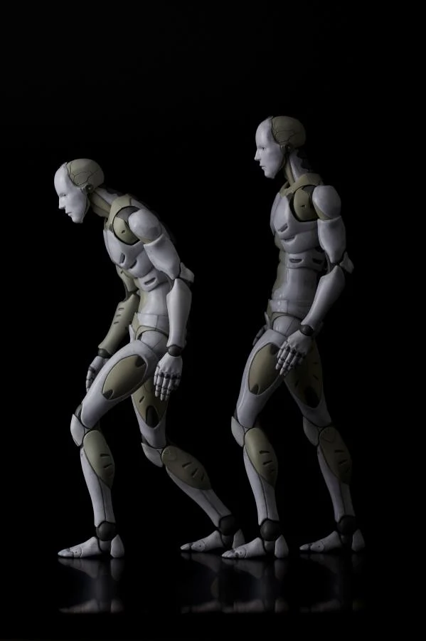 The prototype build of the male type Synthetic Human was developed by TOA Heavy Industries for special operations. The Synthetic Human will be stationed to the TOA Heavy Industries headquarters as a multi-role agent. Being able to adapt to various environments, the Synthetic Human has a very high level of combat ability. But due to being a prototype, his outer aspects are incomplete, with the facial mask being a mere shell which mimics the human face. The early stage prototype of the Synthetic Human has a self-learning A.I. installed.
