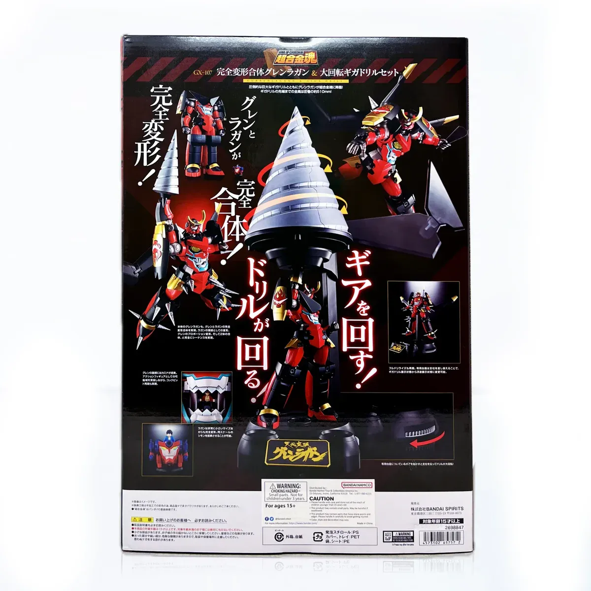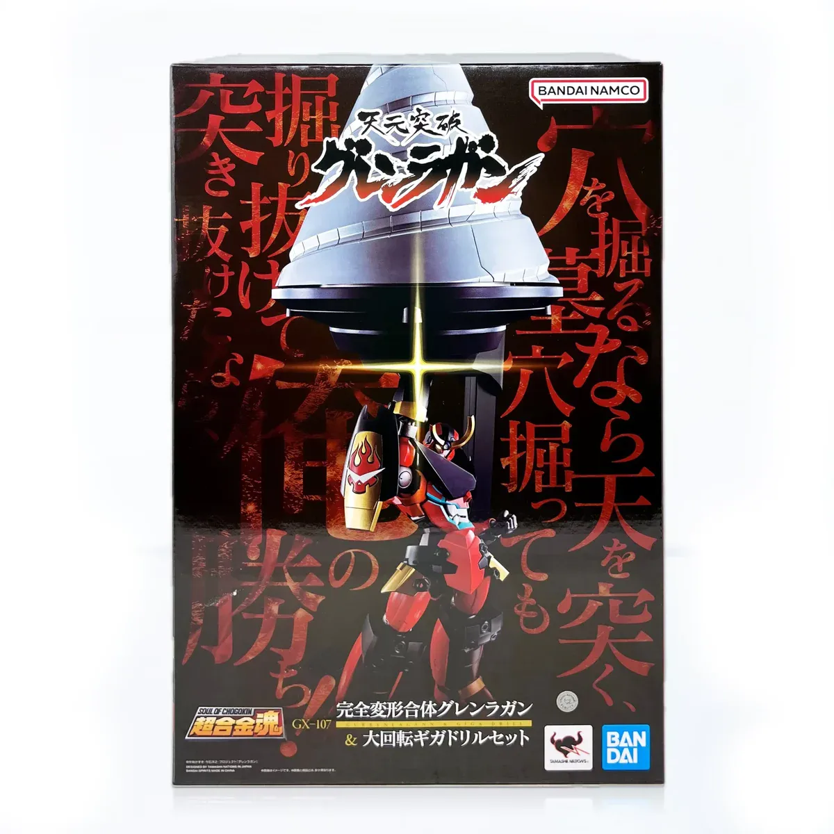 A long-awaited addition to Soul of Chogokin series - The GX-107 GRREN LAGANN & GIGA DRILL SET, from, Tengen Toppa Gurren Lagann! Featuring diecast metal, transforming and combining gimmicks, and a giant Gigadrill accessory. Turn the gear on the stand and the drill spins.