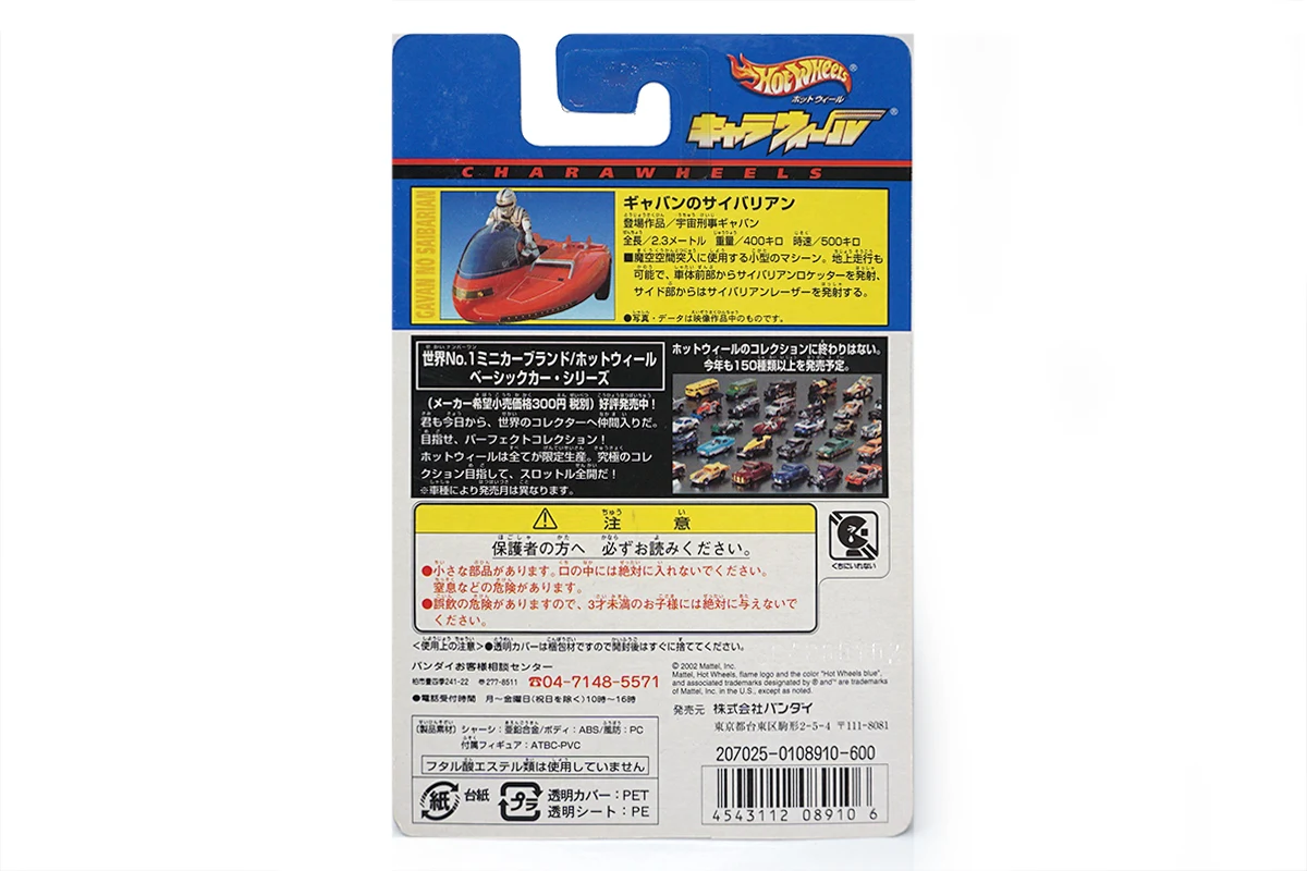 Charawheels were produced exclusively for the Japanese market between 2002 - 2004. The models are approximately 1:64 scale vehicles and are based on movies and television shows that were popular in Japan at that time.