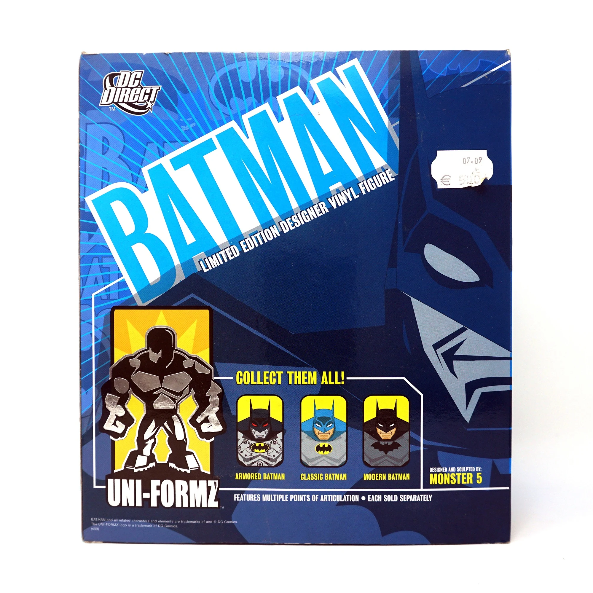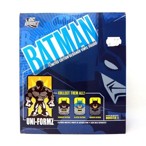This limited-edition vinyl UNI-FORMZ Batman figure features 12 points of articulation, stands approximately 8” tall and is packaged in a deluxe 4-color window box.