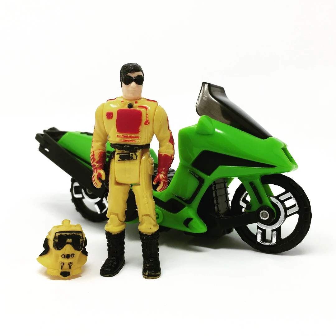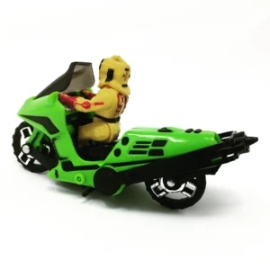 A green motorcycle that can transform into a helicopter. First show appearance: episode 1. His Hocus-Pocus mask can project holograms.