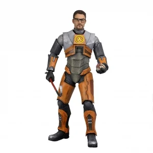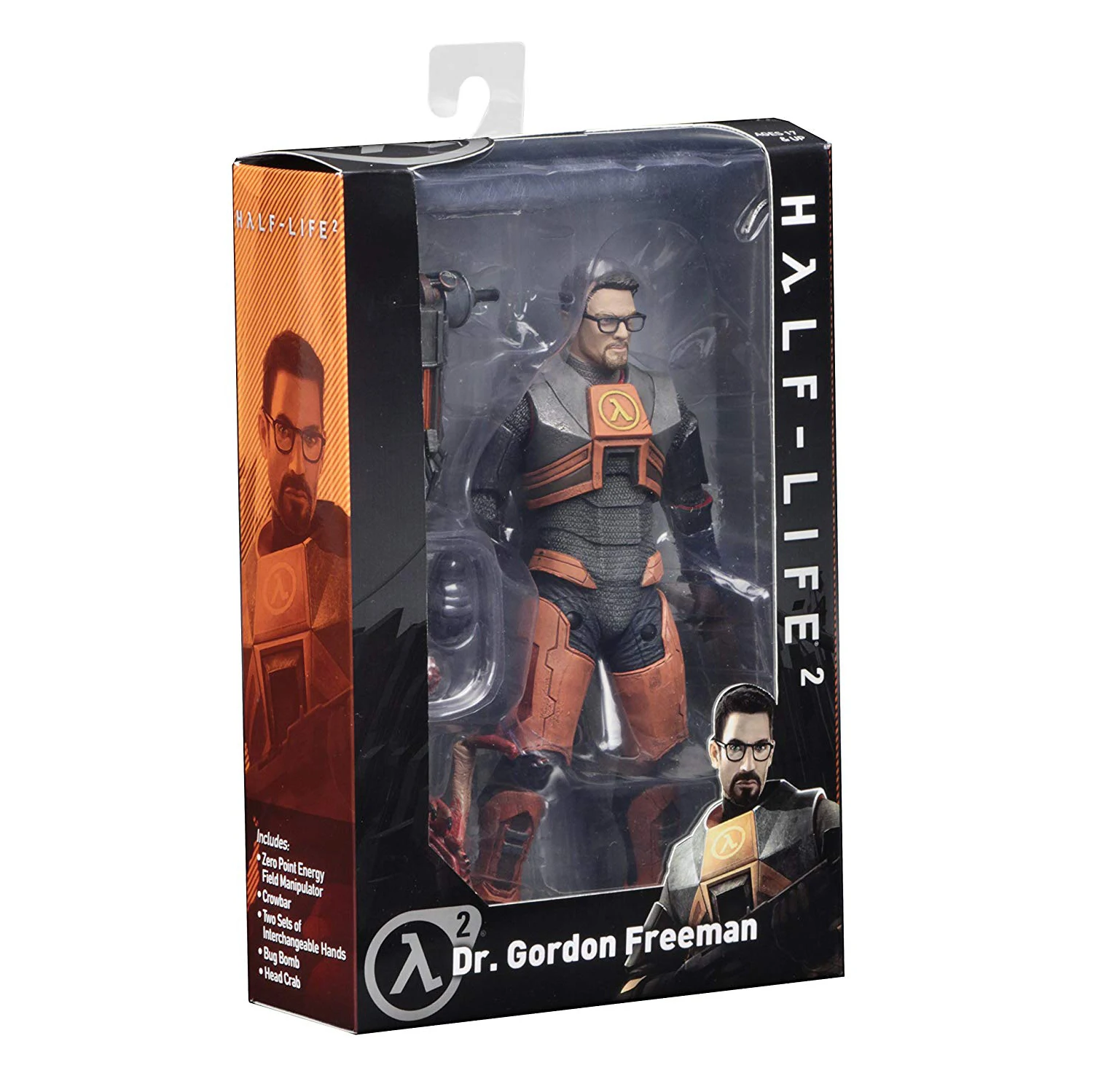 Don't let the horn-rimmed glasses fool you: Dr. Gordon Freeman might be a geek but he's also the savior of humanity. This action figure from the Half Life 2 video game brings the heroic scientist to life in amazing detail! With over 20 points of articulation, this deluxe 7" scale figure is ready to strike amazing poses. Gordon comes with everything you need to free civilization from alien rule: two sets of interchangeable hands, gravity gun (ZPEFM if you must), crowbar and bug bomb accessories, plus a headcrab figure. Window box packaging.