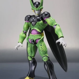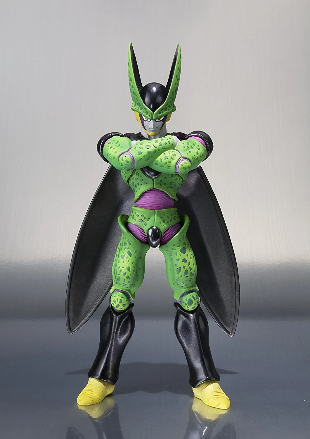Set includes interchangeable hands (x6), 2 interchangeable facial expressions, folded arm parts, and effect Part with supports Cell's complex design is meticulously painted and Cell comes with a variety of option parts to recreate your favorite scenes from the anime.