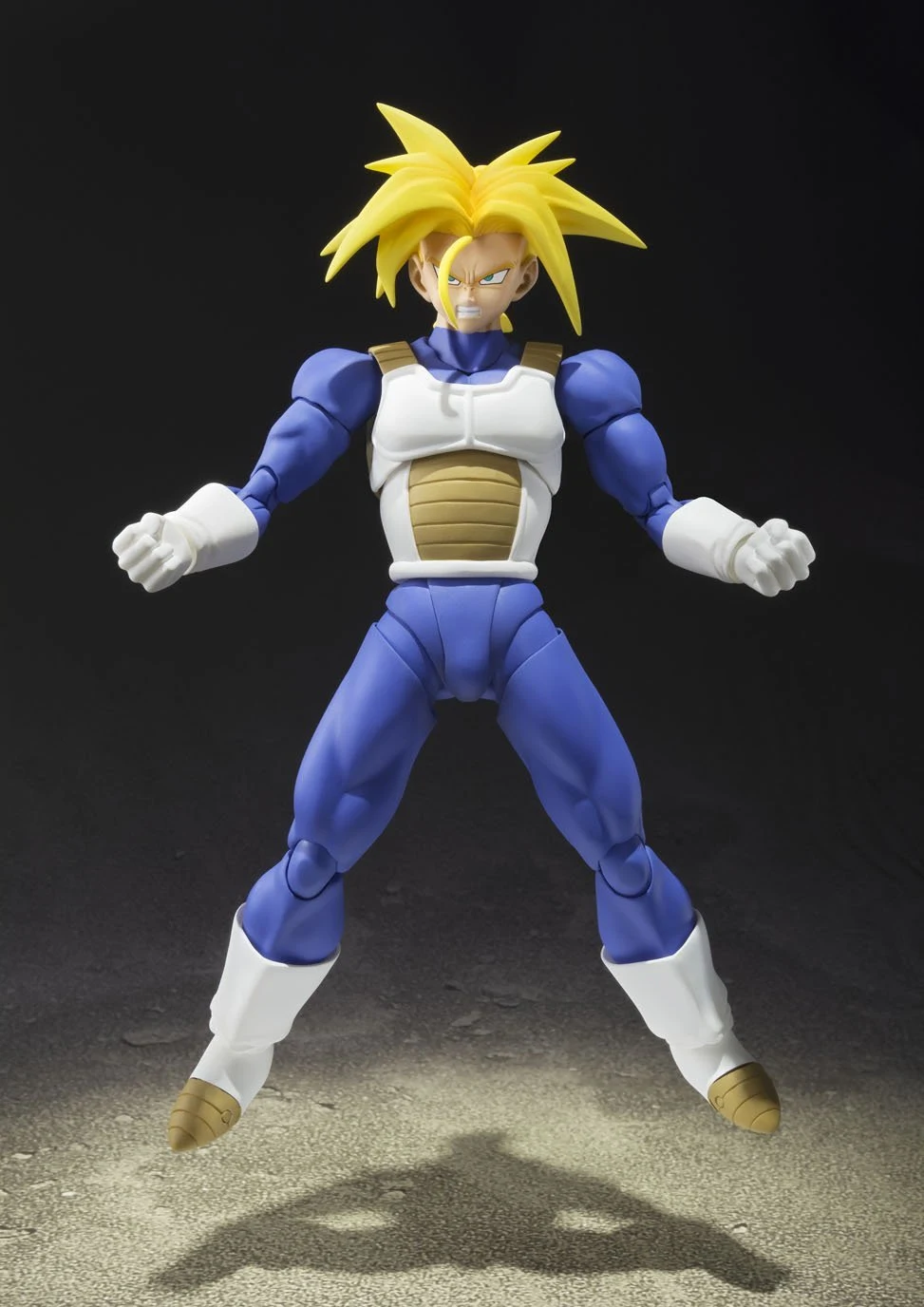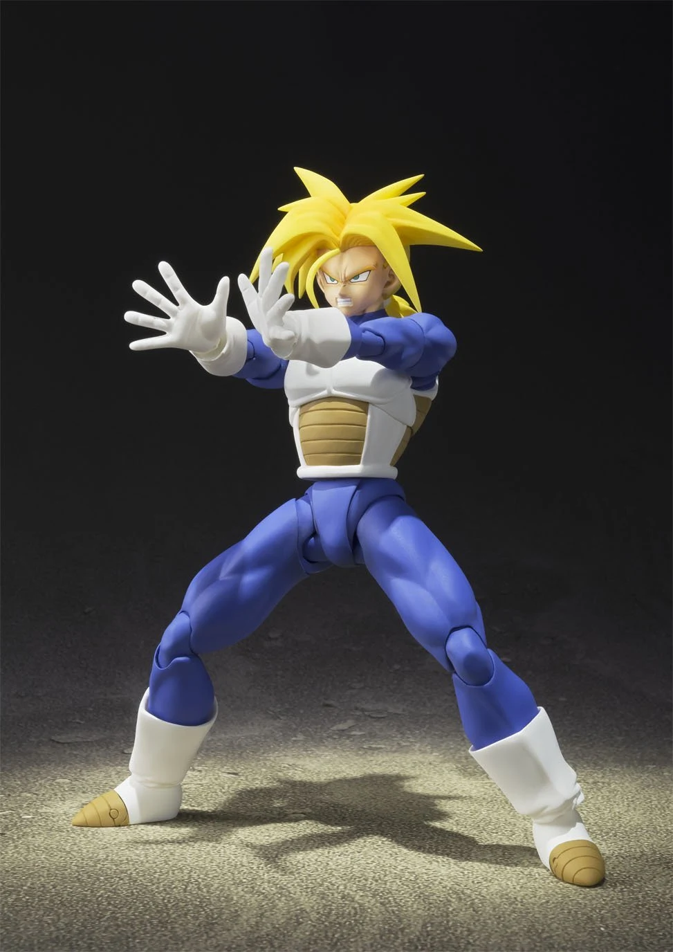 The perfect balance of range of articulation and preservation of proportion is maintained with Trunk's sculpt Fans will be happy to know that Tamashii Nation's has included an interchangeable head piece with his normal hair The head piece infinitely increases posing possibilities for recreating your favorite scenes from the anime! Super Saiyan Trunks also includes interchangeable Super Saiyan face parts (x2), folded arm part, and interchangeable hands (x4)