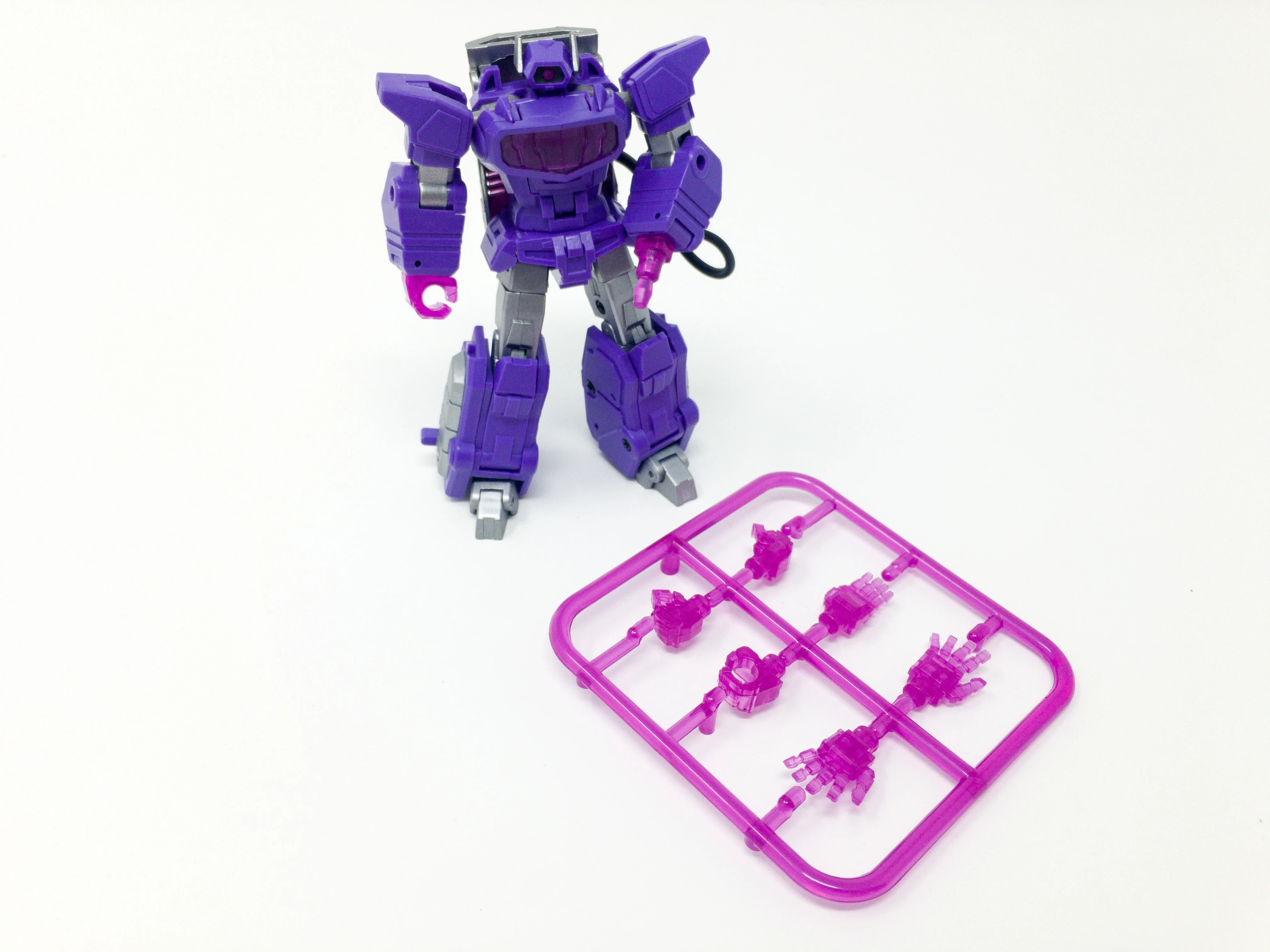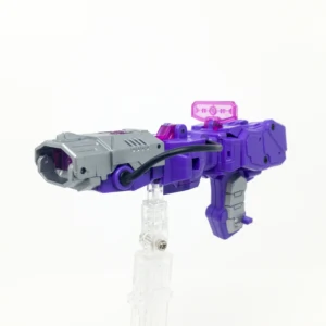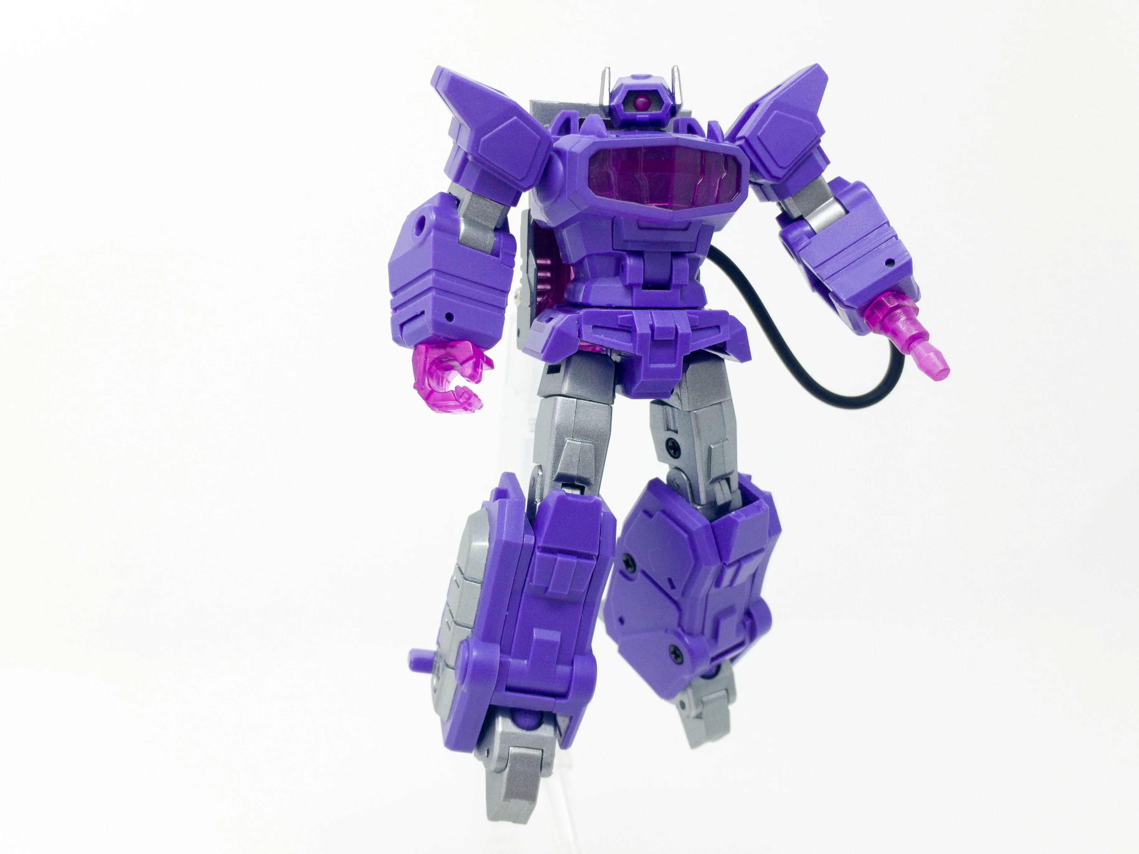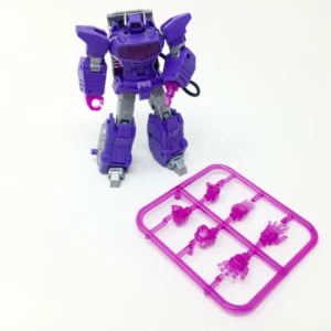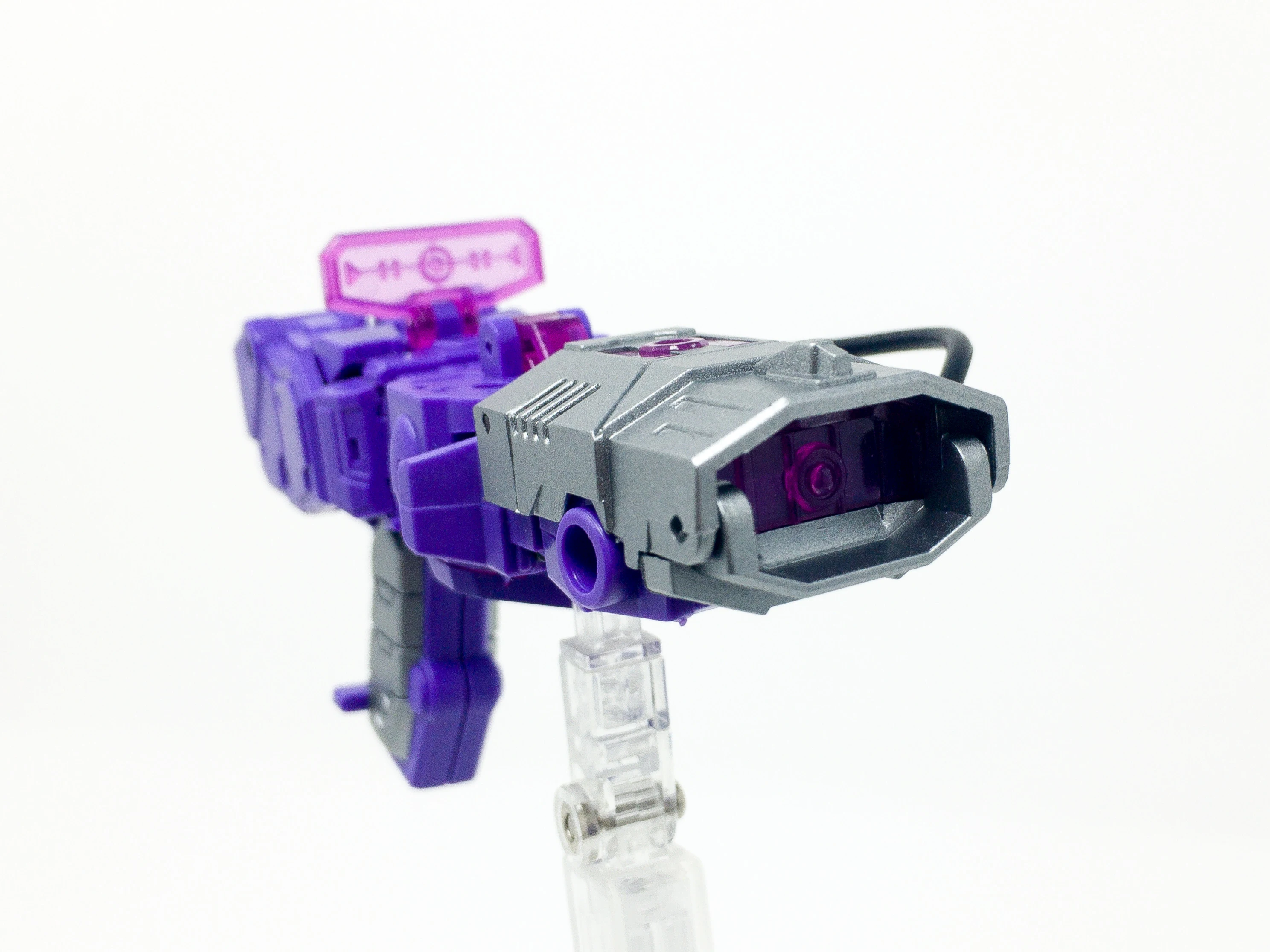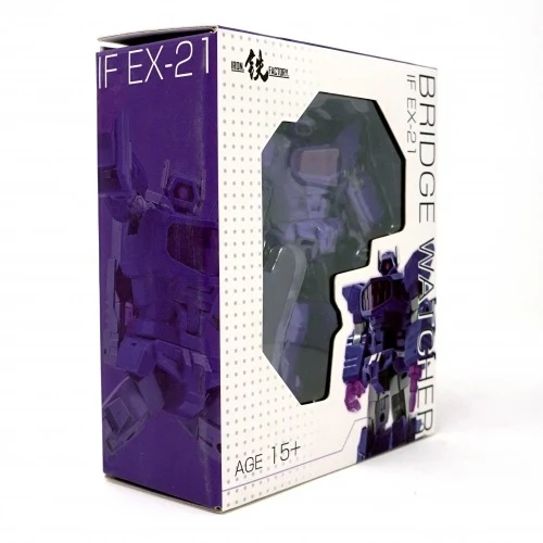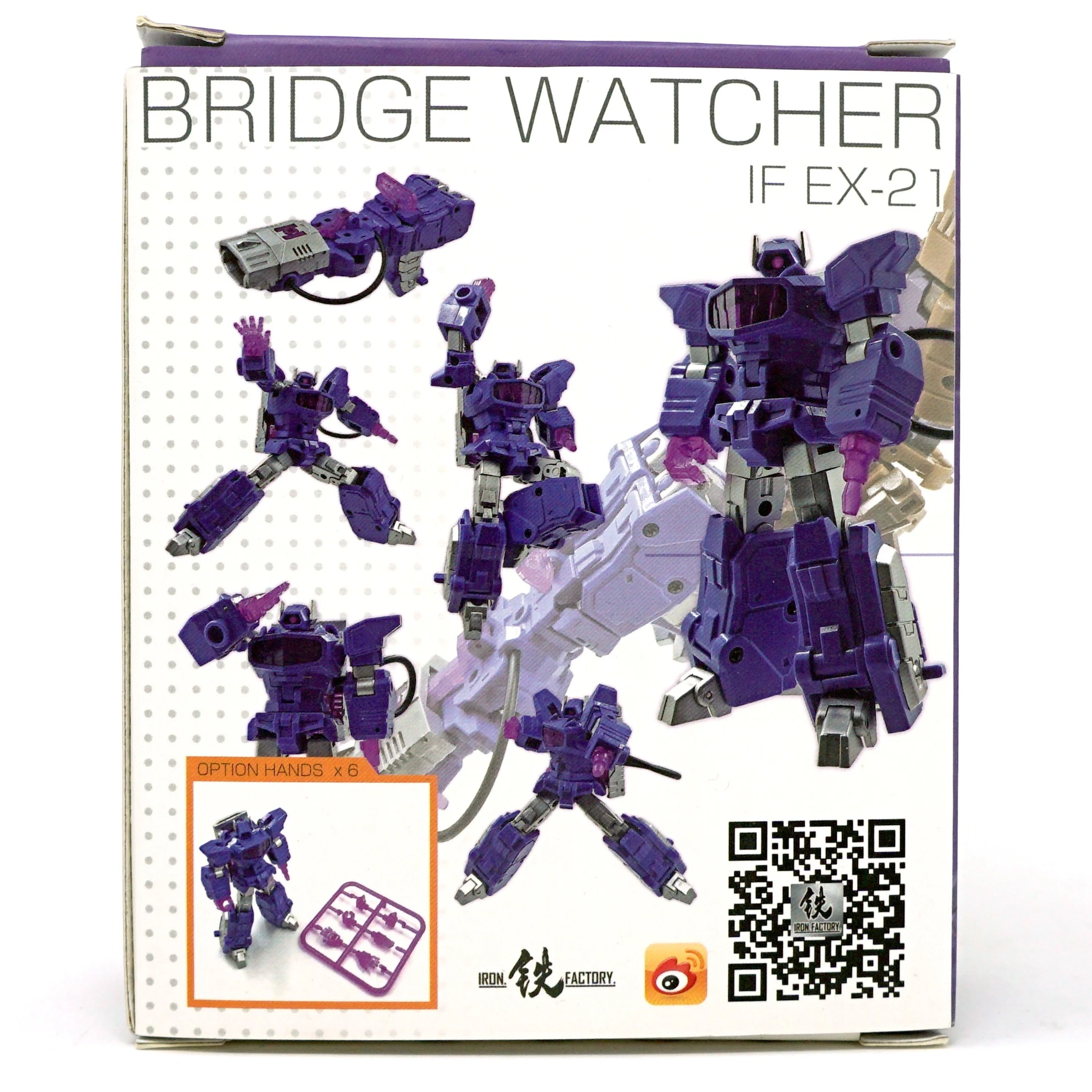 Iron Factory's Bridge Watcher is legends scaled,  transforms to robot and back, includes alternate hand parts, in clear translucent pink plastic, it also fits in the hands of Iron Factory’s Combiners.