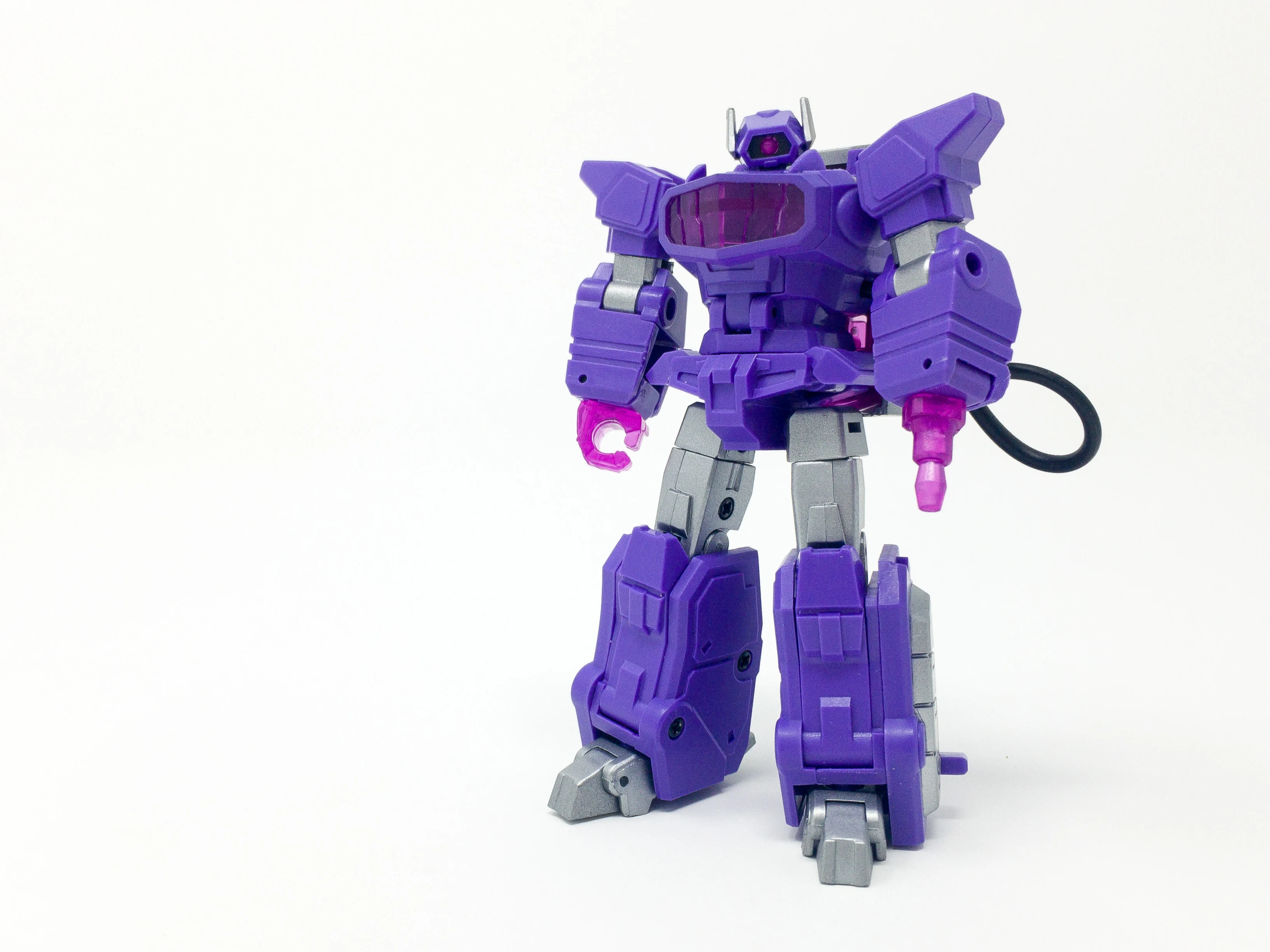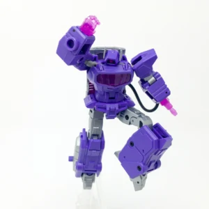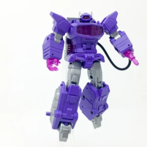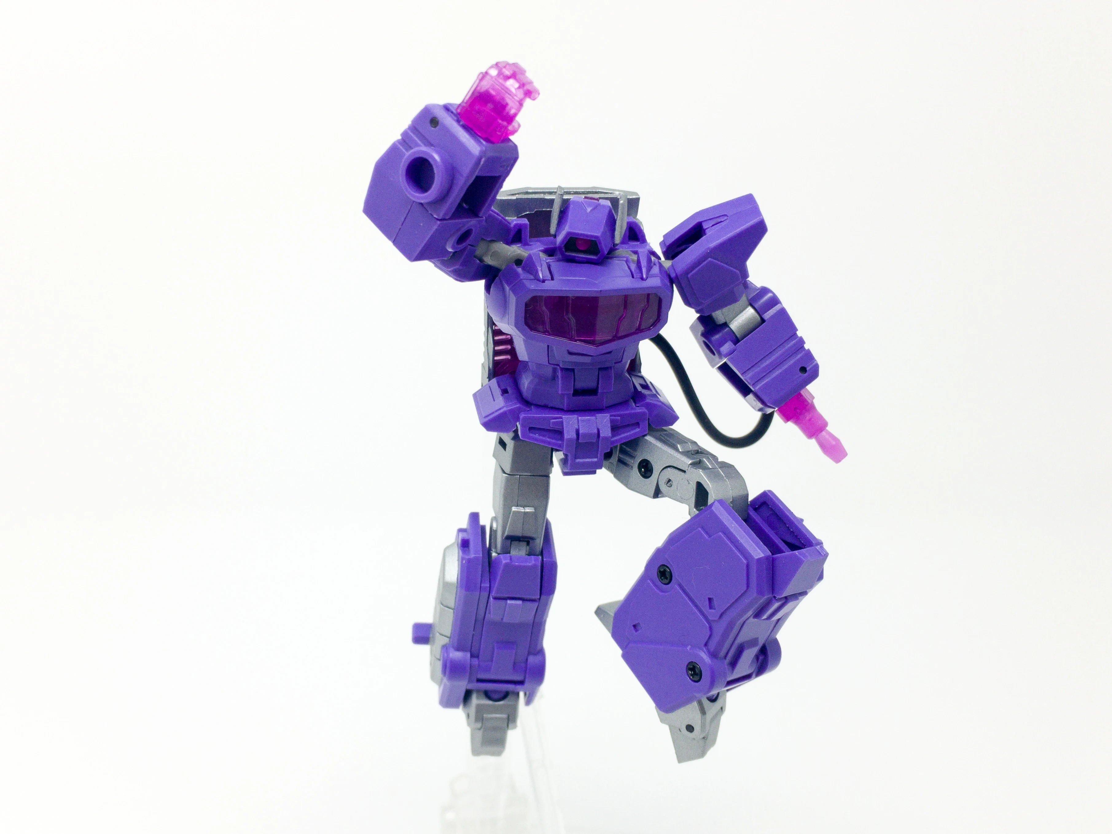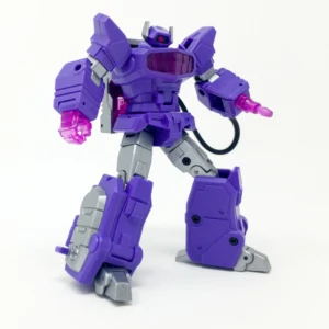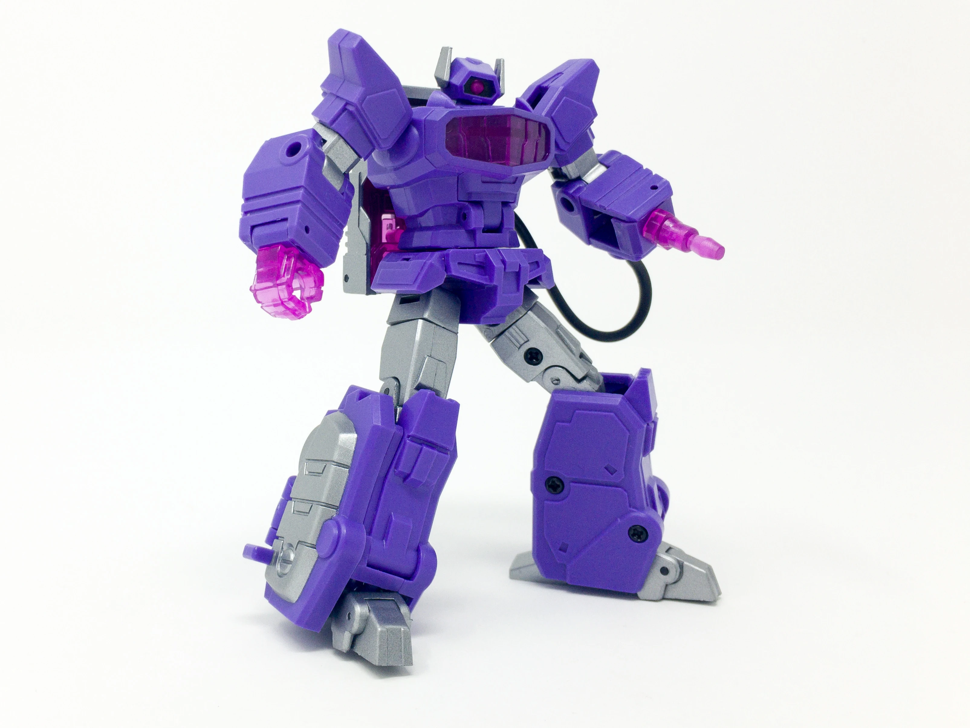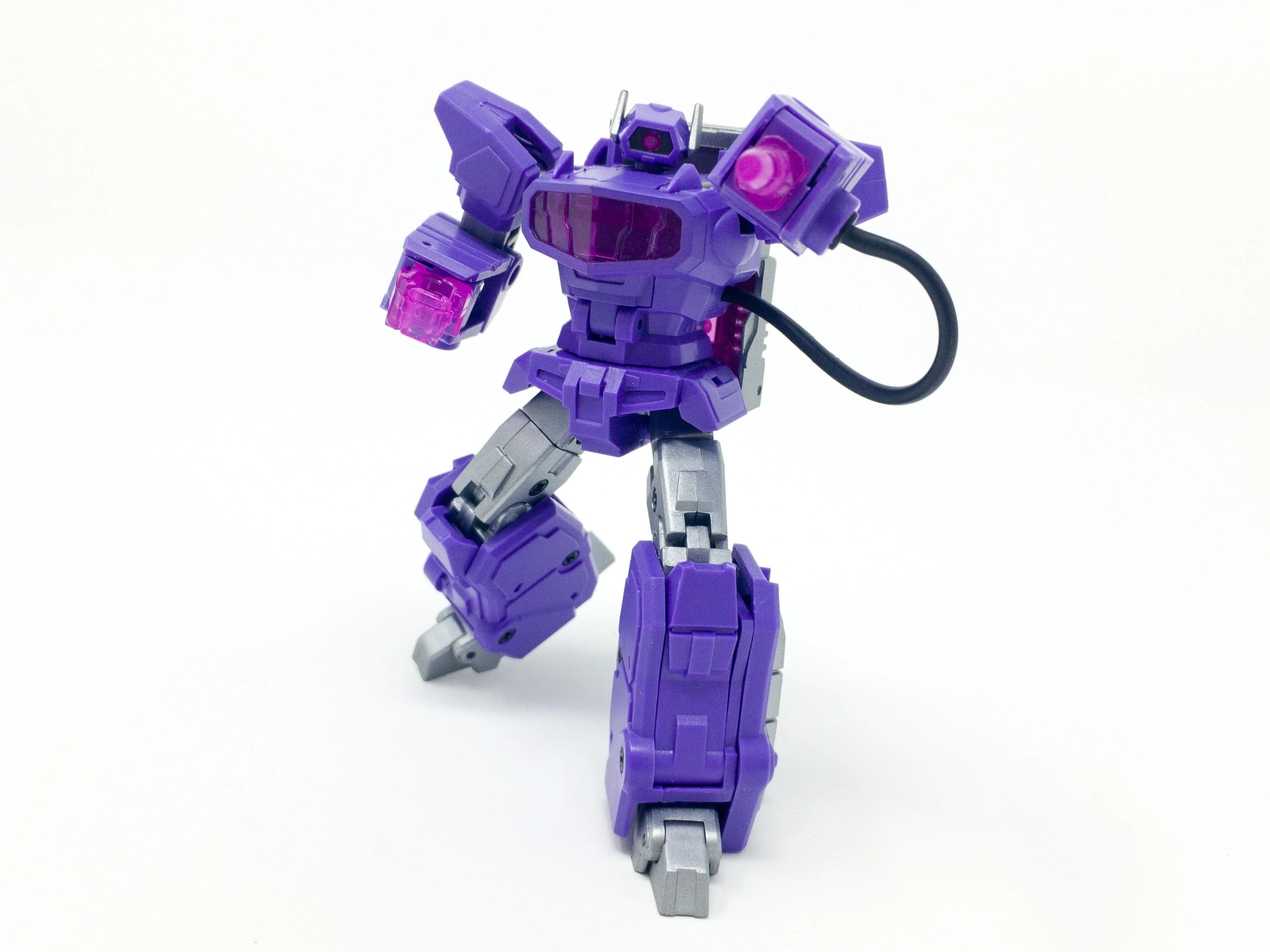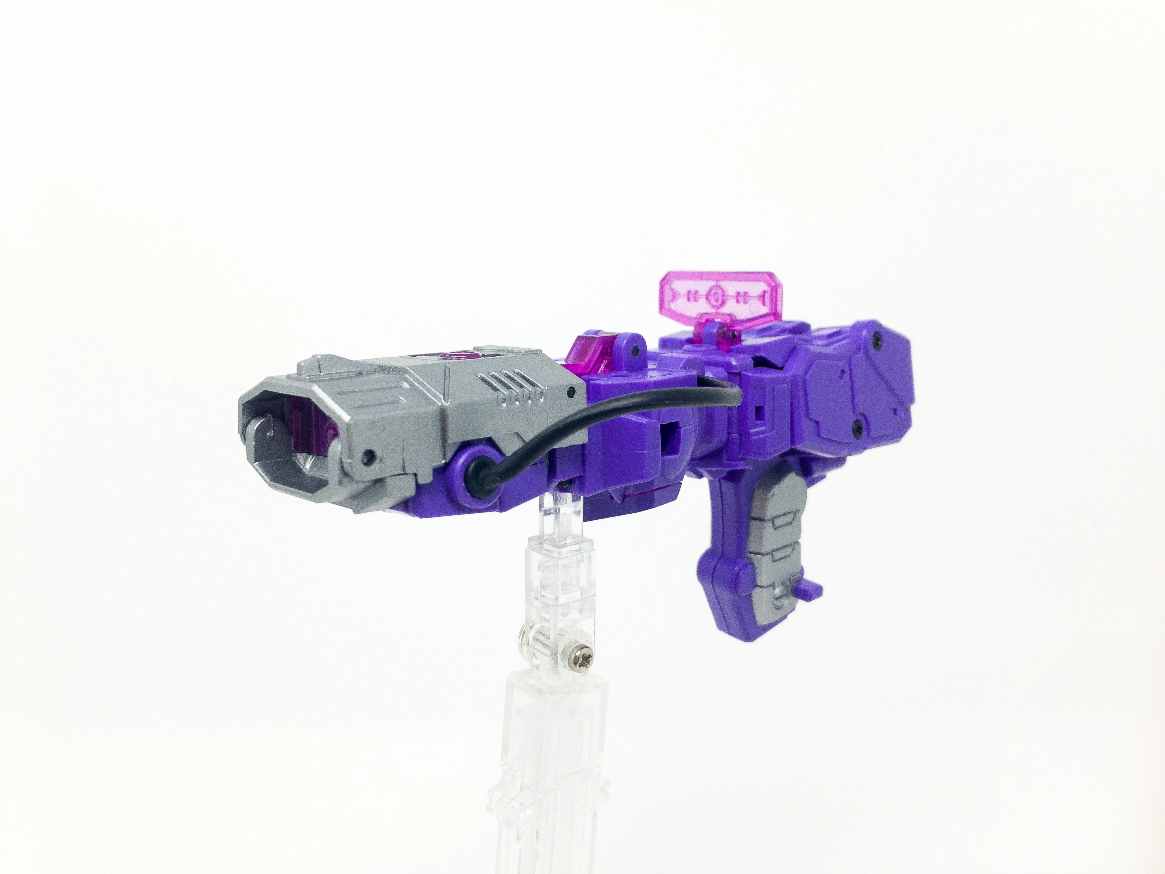 Iron Factory's Bridge Watcher is legends scaled,  transforms to robot and back, includes alternate hand parts, in clear translucent pink plastic, it also fits in the hands of Iron Factory’s Combiners.
