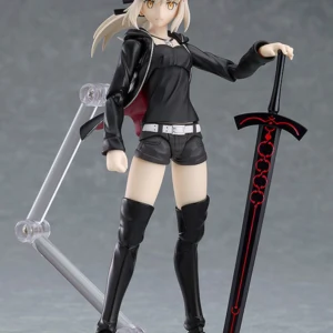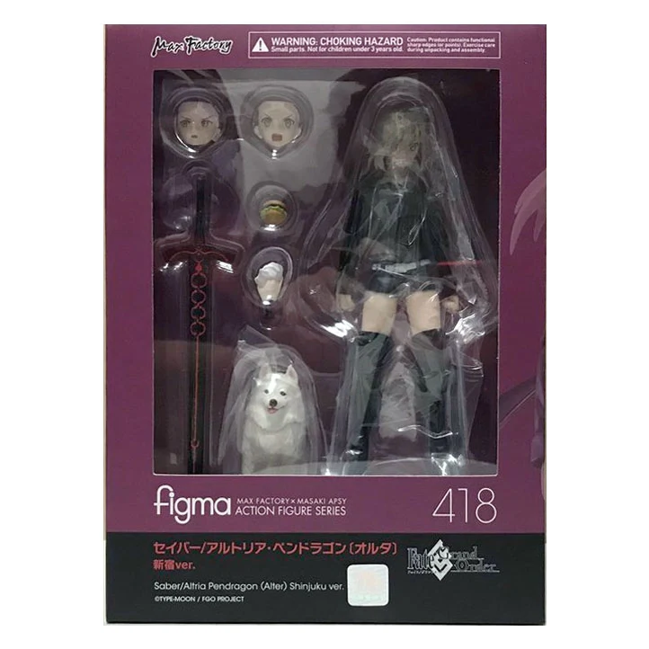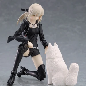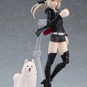 From the popular smartphone game "Fate/Grand Order" comes a figma of Altria Pendragon (Alter) in her outfit from "Singularity Subspecies I: Malignant Quarantined Demonic Realm: Shinjuku Phantom Incident"! - The smooth yet posable figma joints allow you to act out a variety of different scenes. - A flexible plastic is used in specific areas, allowing proportions to be kept without compromising posability. - She comes with three face plates including a displeased expression, a yelling expression and a blushing expression. - For optional parts, she comes with her sword, Excalibur Morgan as well as a hamburger, seen throughout the story. - Her dog "Cavall the 2nd" is included as well. - An articulated figma stand is included, which allows various poses to be taken.