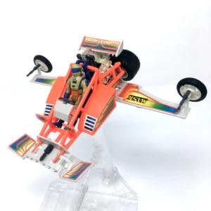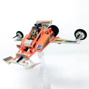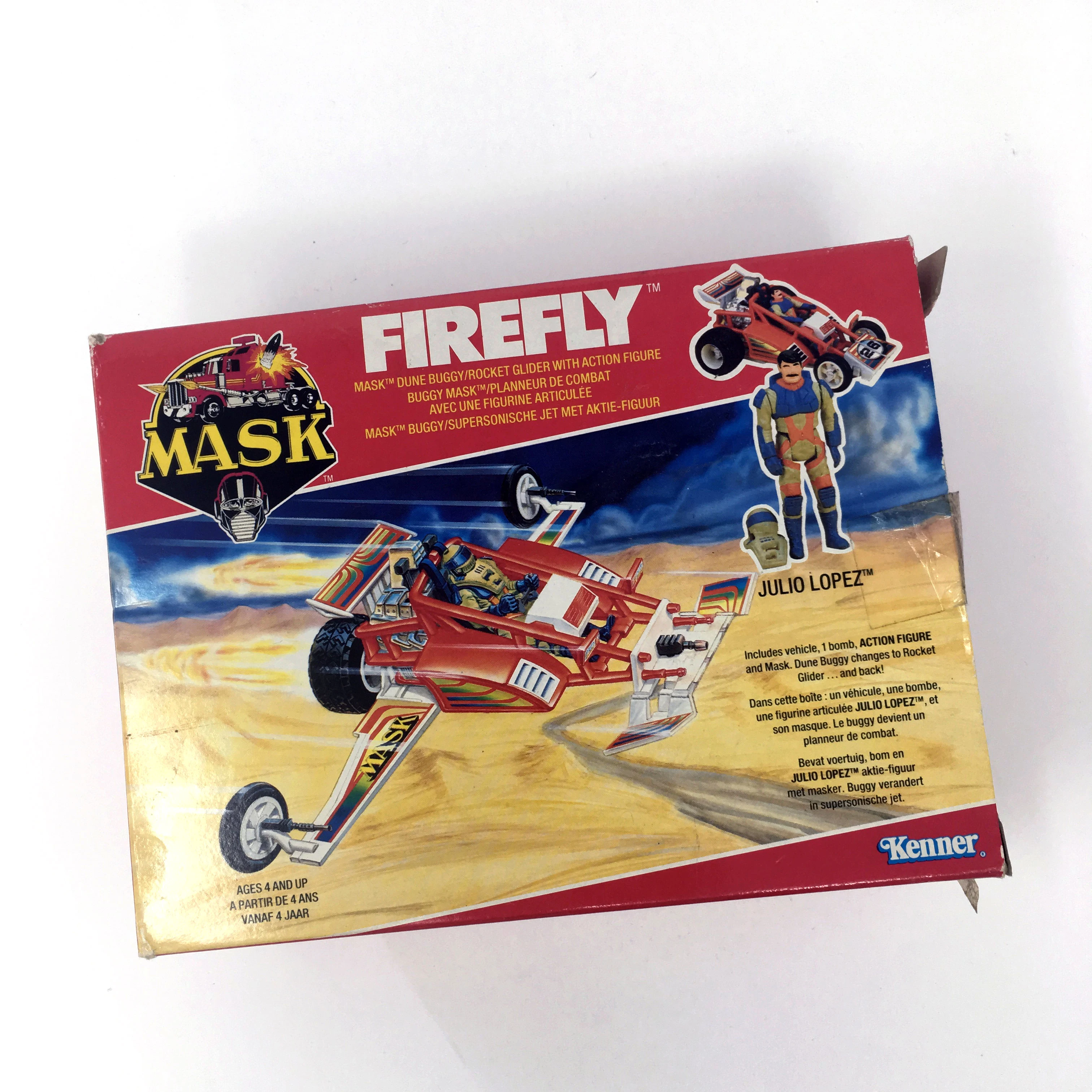 An orange racing dune buggy which turns into a jet. First show appearance: episode 49. His mask is called Streamer which fires sticky bands of glue, a fire suppresent foam, or a slick oil-like substance. In one episode, Firefly was referred to as Dragonfly.