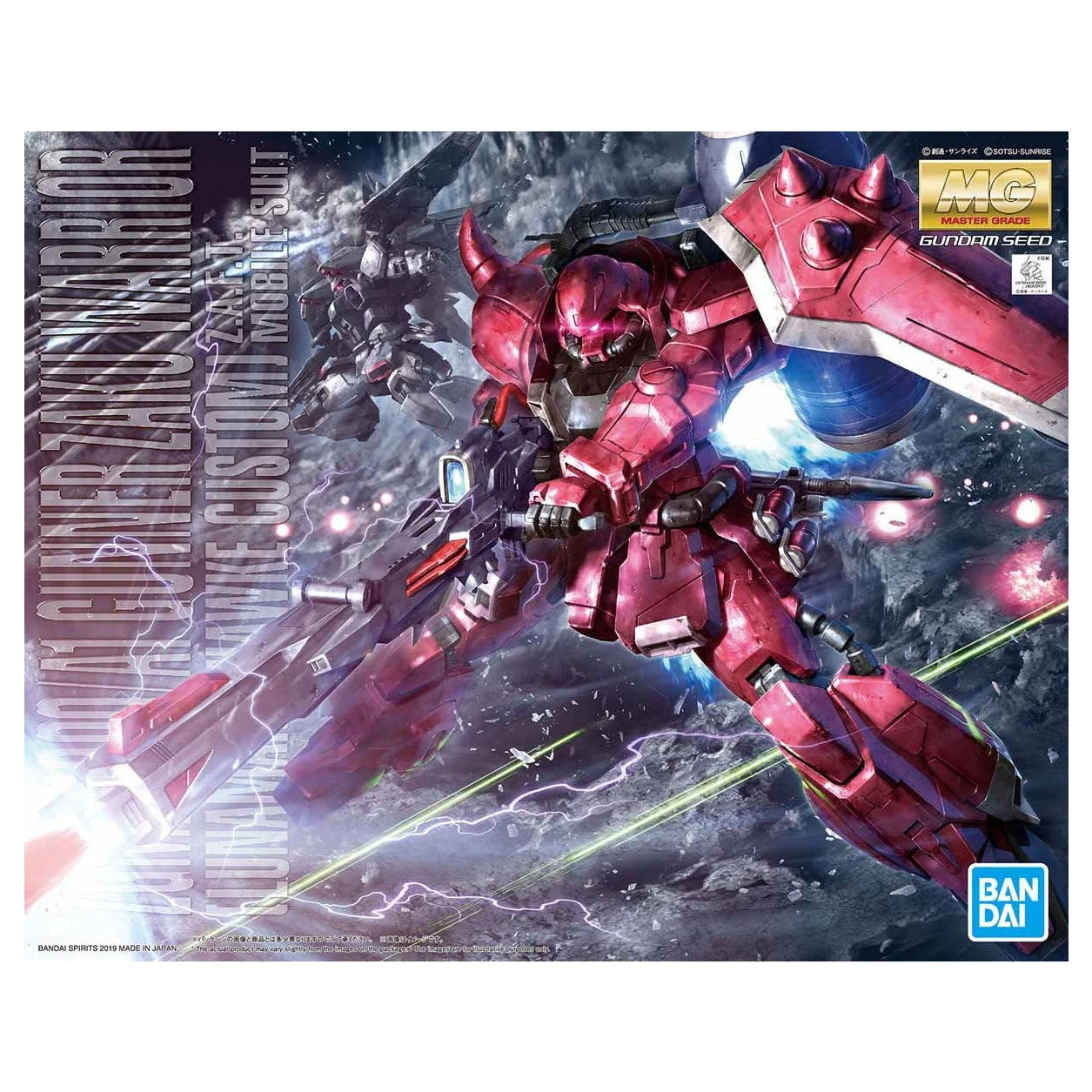 Includes Lunamaria Hawke figurine. Leg hoses are preassembled using ABS-PP dual-molding technique. Uses entirely polystyrene except for the leg and backpack hoses. Released to coincide with the 15th anniversary of Gundam SEED Destiny.