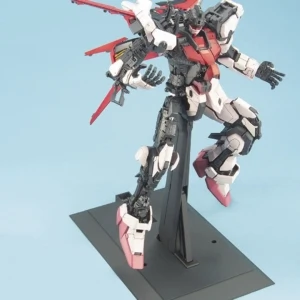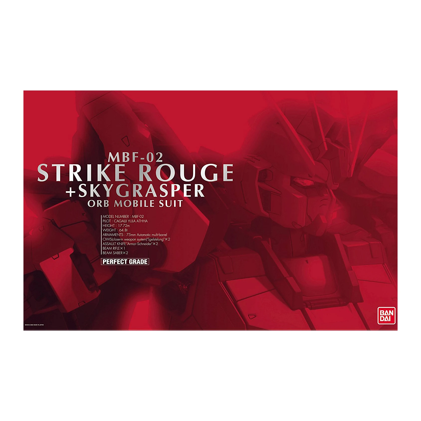 This special combo features the Strike Gundam in Cagali's colors known as the "Strike Rouge" along with the PG Skygrasper. The Strike Gundam from Gundam Seed makes its debut into the PG line featuring brand new styling with extreme articulation and unprecedented mechanical detail. Shoulder units can extend outward for expanded range of movement. Elbows feature multi-joint construction, allowing complex poses such as drawing the sword. Stomach unit features full articulation, including "hydraulic" cylinders. Knee armor designed to move along with poses. Calf frame extends and retracts. Battery-powered light-emitting diode (LED) system can be switched on to illuminate the eyes. A new original gimmick includes the "Grand Slam" sword which features chromed plastic for a realistic finish. Additional accessories include a beam rifle with accurate internal detail, a shield with actual direct-view shutter feature, and 2 foldable armor Schneider knives that can be stored in the skirt armor. CR1220 battery for LED sold separately. A Perfect Grade model of the Skygrasper support aircraft from "Gundam Seed" features the Aile Striker pack that is compatible with the PG Strike Gundam. Includes transparent canopy and swappable landing gear as well as movable hatches. Display stand included is compatible with PG Strike Gundam combined with Aile Pack. Aile Pack features numerous mechanical inner detail designed to resemble the intricate propulsion systems used in the shows. Beam saber blades for PG Strike Gundam are included with this model kit.