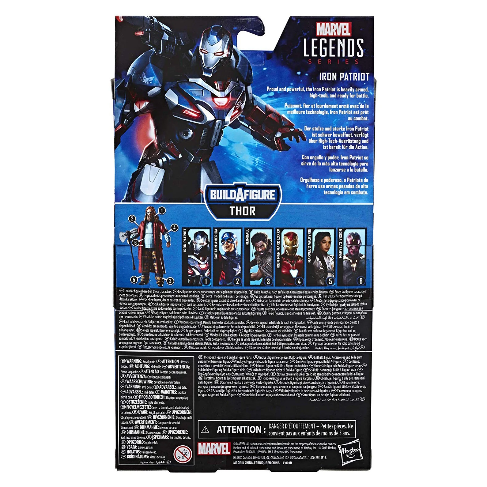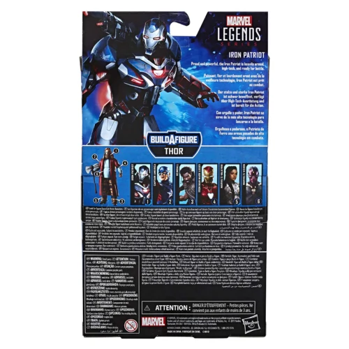 6-inch legends series Iron Patriot figure features multiple points of articulation. Thor build-a-figure parts - includes left arm and alternate hand build-a-figure pieces.