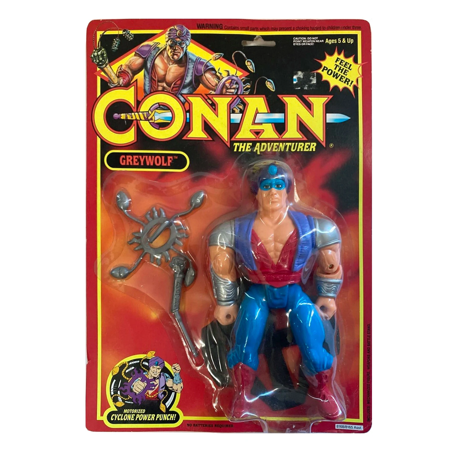 After the wicked Wrath-Amon turned Greywolf's brother and sister into werewolves, this heroic wizard warrior became Conan's ally in the magical battle against the evil forces. The fiery red jewel in Grewolf's turban allows him to see hundreds of miles away, and with a wave of his staff he can create a terrifying cyclone capable of destroying anything in his path.