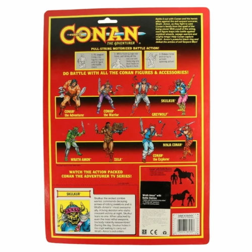 After the wicked Wrath-Amon turned Greywolf's brother and sister into werewolves, this heroic wizard warrior became Conan's ally in the magical battle against the evil forces. The fiery red jewel in Grewolf's turban allows him to see hundreds of miles away, and with a wave of his staff he can create a terrifying cyclone capable of destroying anything in his path.