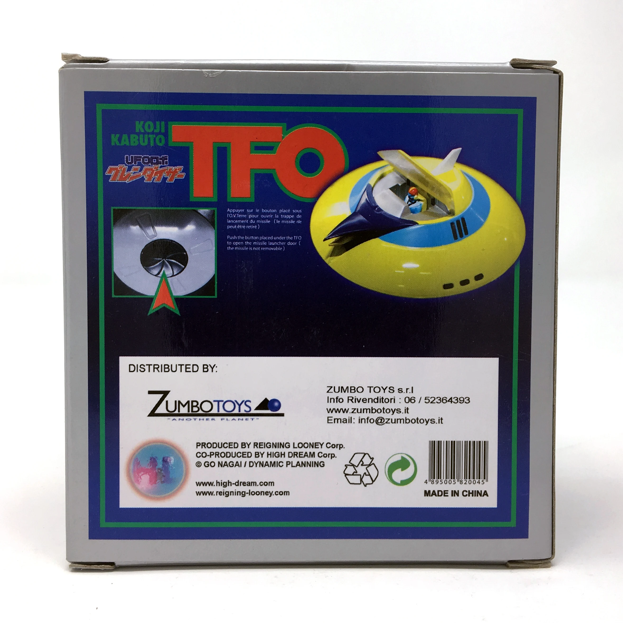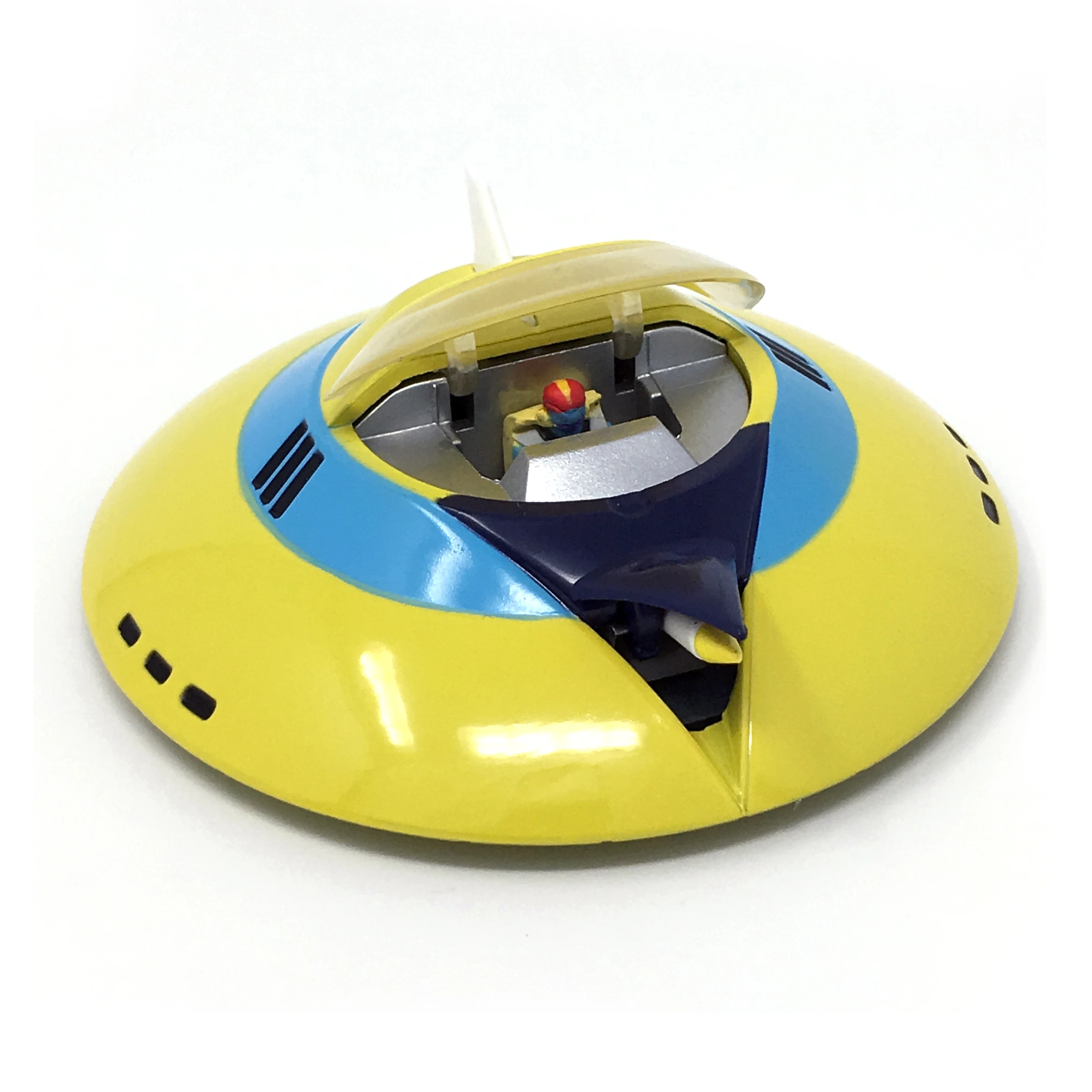 Die cast ufo from Grendizer anime. Push the button under the TFO to open the missile launcher.