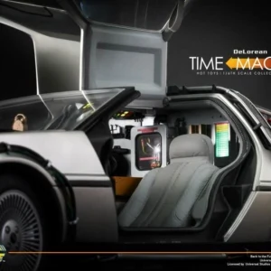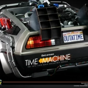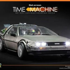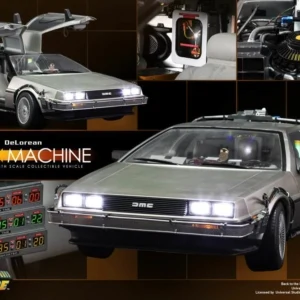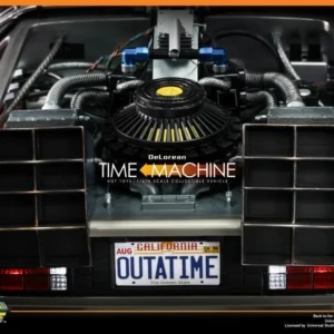 The movie-accurate DeLorean Time Machine collectible vehicle is very detailed and specially crafted based on the film, featuring a meticulously crafted exterior with cable wires across body, detailed structure of the time machine engine deck and cabin, functional gull-wing doors, and a number of LED light-up functions on the exterior and interior.