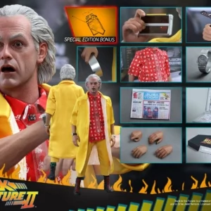 This movie-accurate collectible figure is specially crafted based on the image of Christopher Lloyd as Dr. Emmett Brown in Back to The Future Part II. It features a newly developed head sculpt, sophisticated tailored “futuristic” costume, wide variety of detailed accessories, and a figure stand.