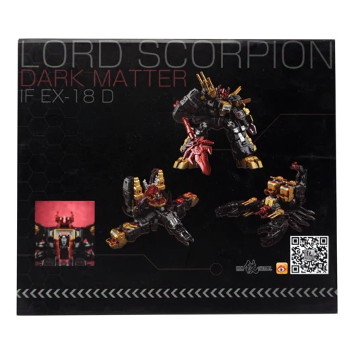 Enter Iron Factory's IF-EX18D Lordscorpion Dark Version with 3 Modes of transformation! Figure stands approximately 18CM/7inch tall and is scaled proportionately to legends figures.