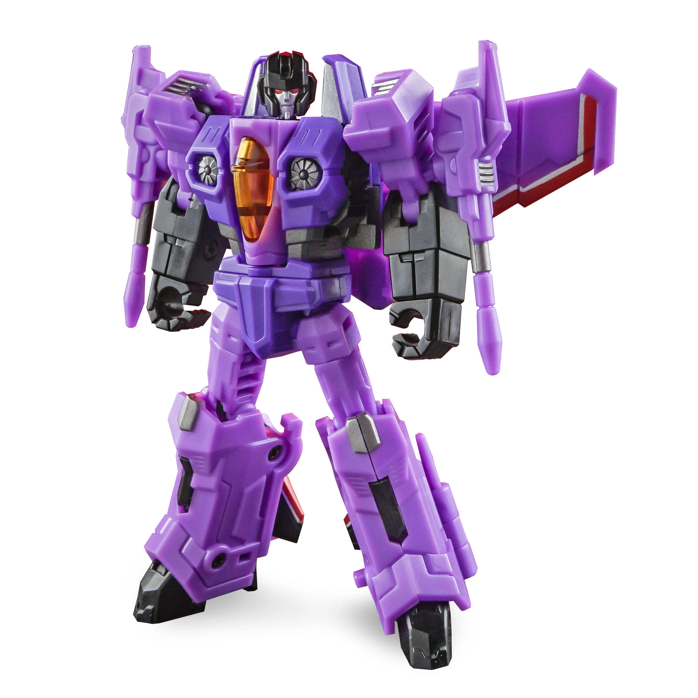 Iron Factory - IF-EX20A - Amethyst is a purple colored seeker jet, featuring a clone inspired color scheme that is great for troop building. This figure is legends scale and transforms from seeker jet to robot and back. Limited to just 1500 pieces worldwide, each figure will include an individually numbered character card. This legends scaled fighter jet from Iron Factory transforms to robot and back and includes null ray weaponry as shown.