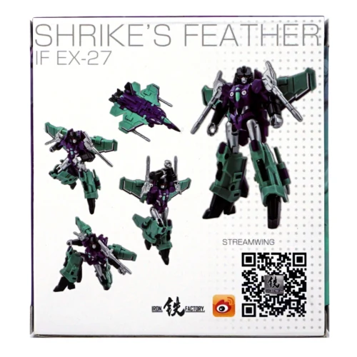 Iron Factory - IF-EX27 - Shrikes Feather, is legends scaled and transforms from futuristic space plane to robot and back! Figure stands approximately 9CM/3.5" tall in robot mode. This legends scaled figure from iron factory includes null ray weaponry.