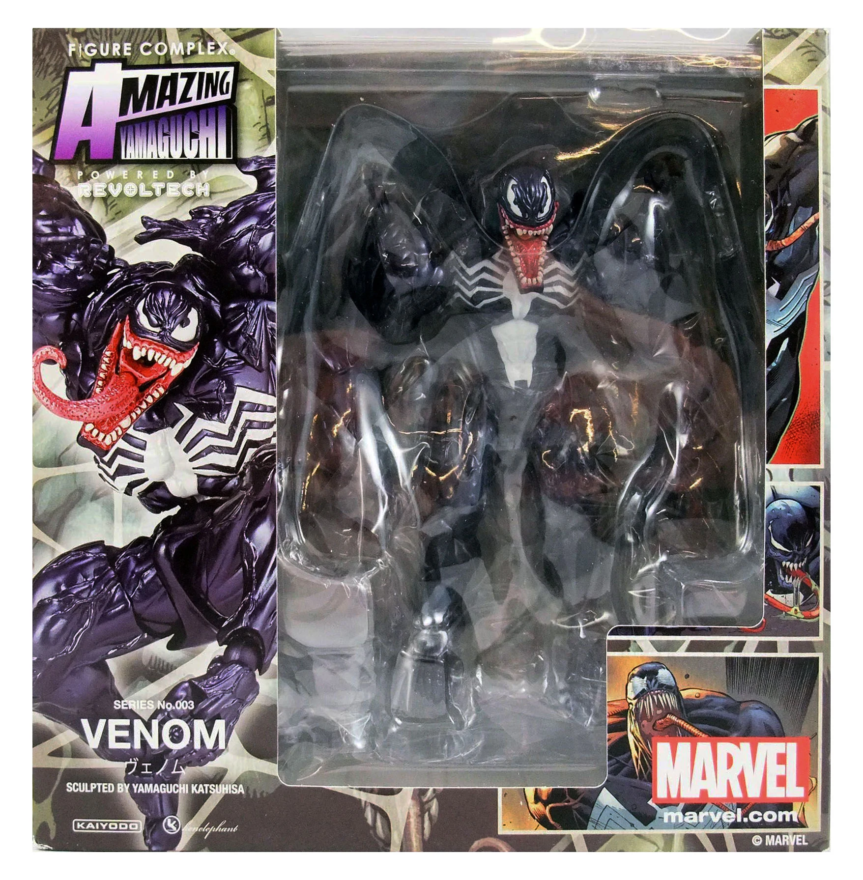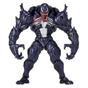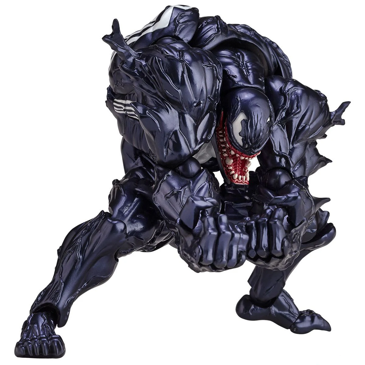 This menacing villain stands 6.9 inches of beefy, brawny badassery! He's fully posable featuring a whopping 47 points of articulation to wreak all kinds of havoc, and includes 4 attachable tendrils of evil black goop, an extra head to vary his expression, and a big ol' swiveling tongue! Pose this incredible Venom figure on his stand for an awesome fight scene with the Revoltech Spider-Man!