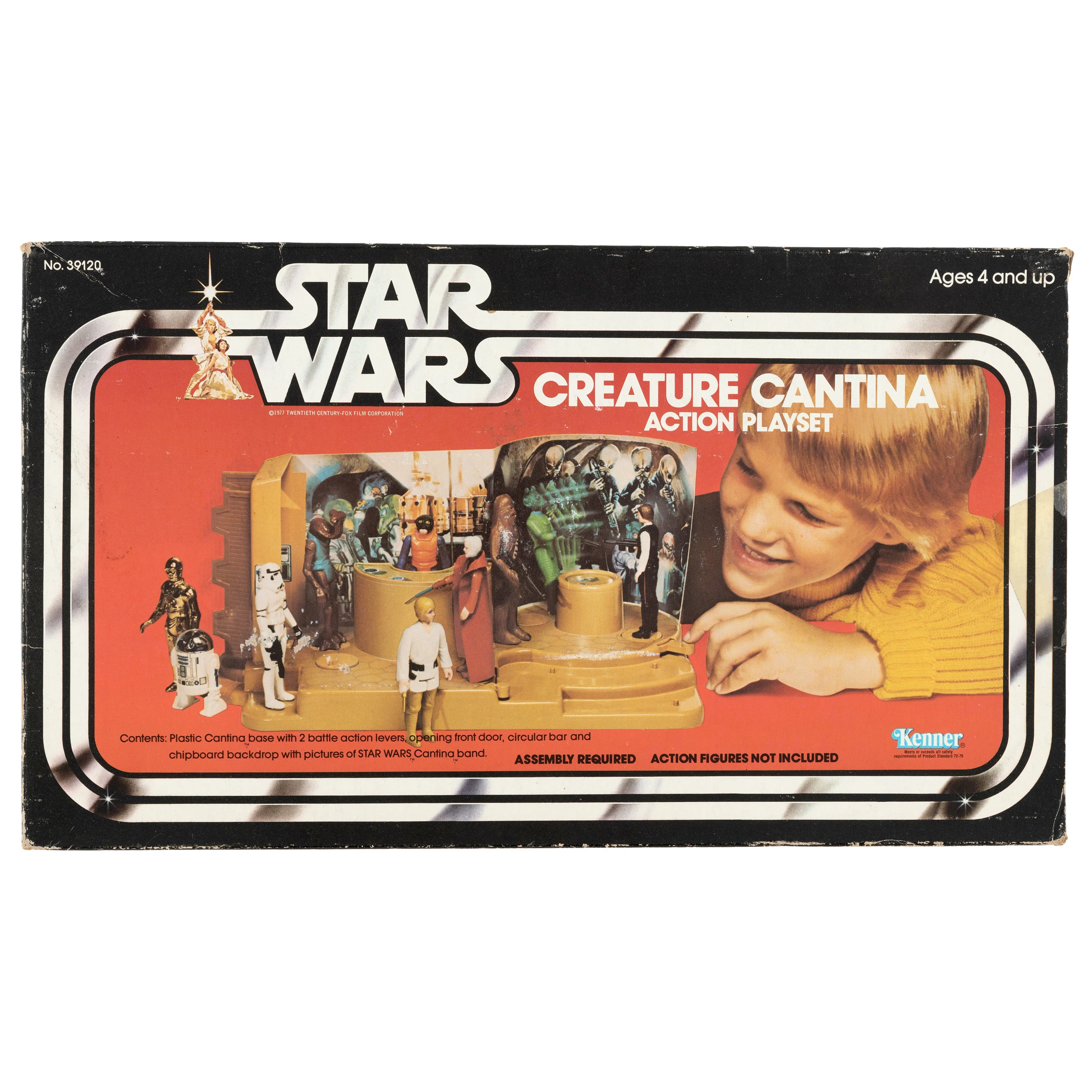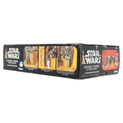 Contains hard plastic playset base and cardboard backdrop w/action levers, opening front door and circular bar.