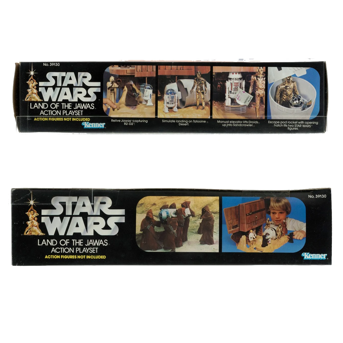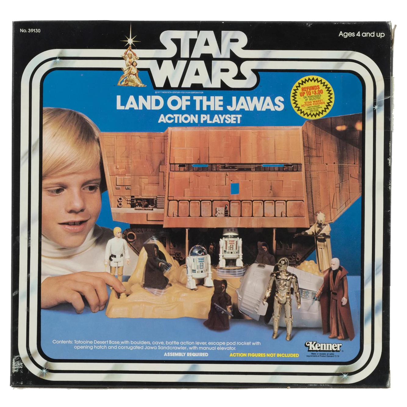 Contains "Tatooine Desert Base With Boulders, Cave, Battle Action Lever, Escape Pod Rocket With Opening Hatch And Corrugated Jawa Sandcrawler With Manual Elevator.