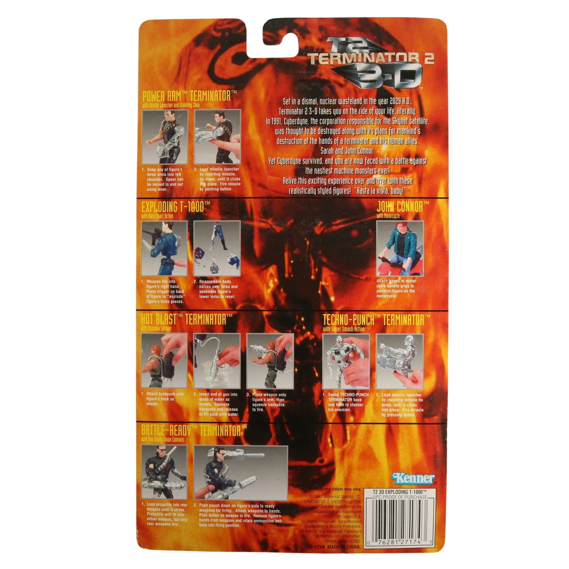 With Blast Apart Action! The evil exploding T-1000 is made out of liquid metal and can change into any shape he chooses! After being hit by the Terminator, this incredible villain completely blows apart! But even that kind of major damage can't stop Exploding T-1000, who can re-from himself once again!