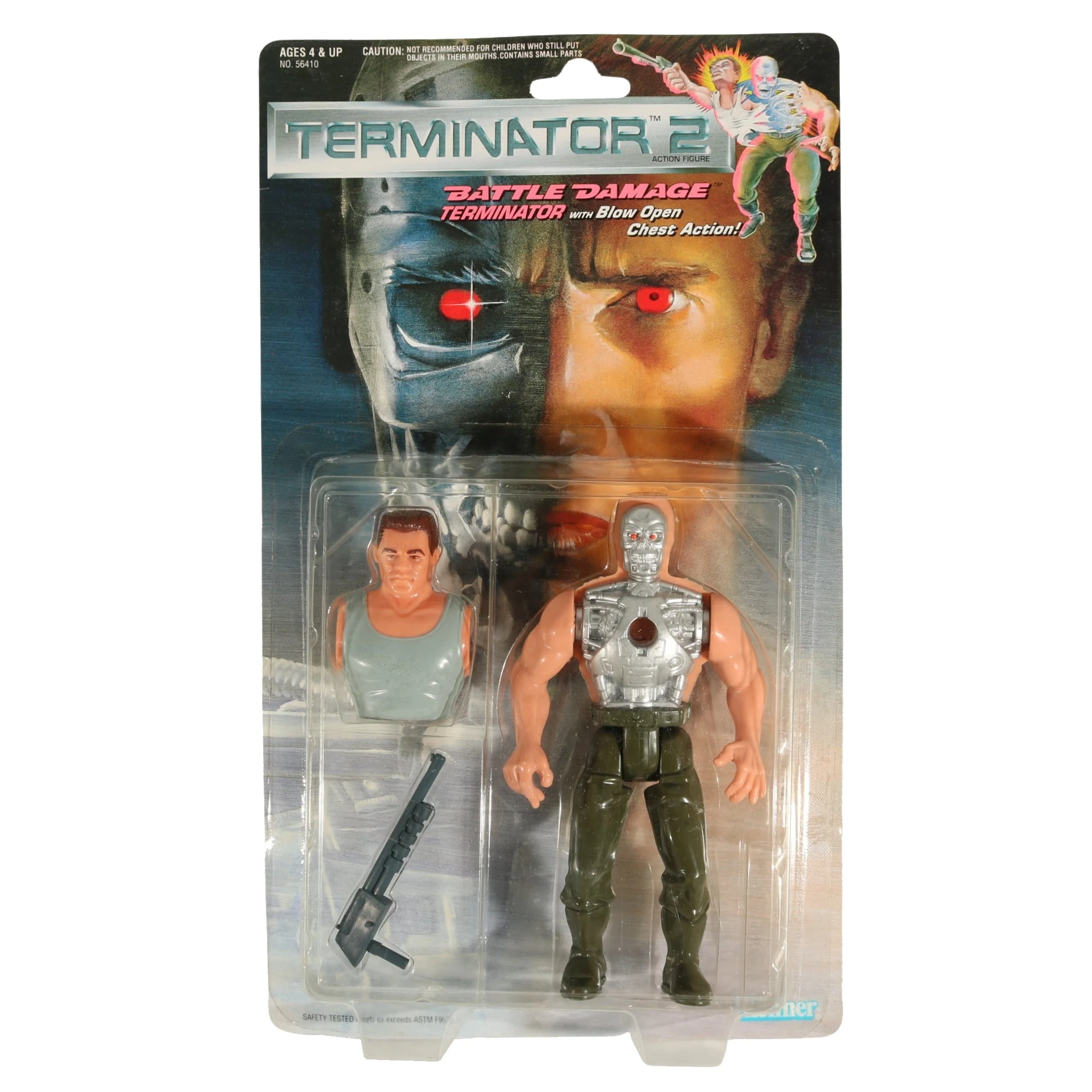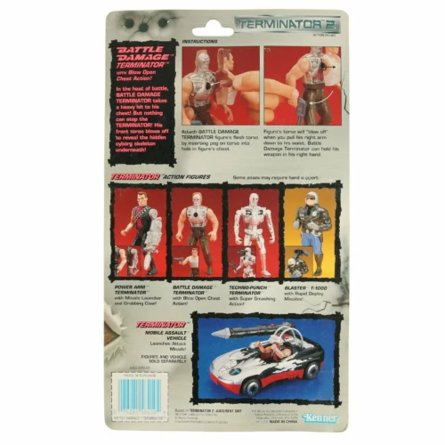 With Blow Open Chest Action! In the heat of battle, Battle Damage Terminator takes a heavy hit to his chest! But nothing can stop the Terminator! His front torso blows off to reveal the hidden cyborg skeleton underneath!