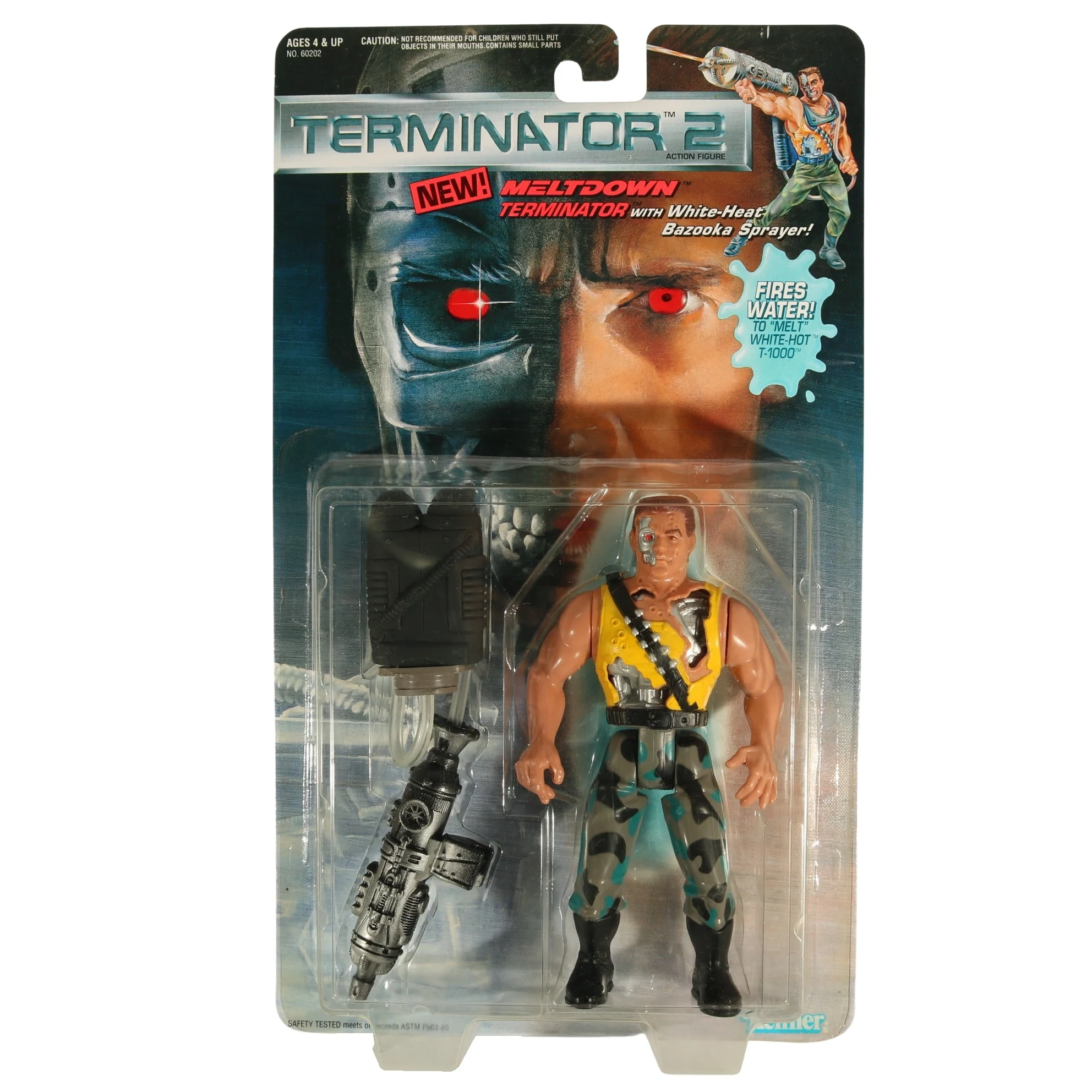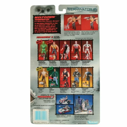 With White-Heat Bazooka Sprayer! The Meltdown Terminator can blast the evil White-Hot T-1000 with his intense White-Heat Bazooka Sprayer! When the White-Hot T-1000 comes too close, Meltdown Terminator fires the sprayer to melt his deadly opponent!