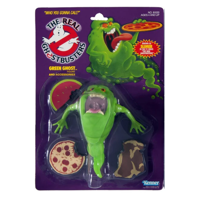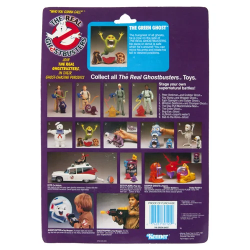 Action figure which is part of Kenners The Real Ghostbusters Toy Line's line on launch. Based off The Real Ghostbusters animated series Slimer, likely based off the The Real Ghostbusters Pilot as the Green Ghost was designed to look evil. The Green Ghost was the first (along with The Stay-Puft Marshmallow Man) made in the Kenner Real Ghostbusters Line. Later the ghosts H2 Ghost, Bug-Eye Ghost, and Bad-To-The-Bone Ghost were released and bundled with the previous two ghost toys.