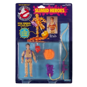 Slimed Hero Figure: Peter Venkman an action figure which is part of Kenners The Real Ghostbusters Toy Line's Slimed Heroes set. Based on The Real Ghostbusters animated series Peter Venkman. For most markets, this was the last version of Peter released by Kenner. The Slimed Heroes group also included Egon, Ray, Winston, and Louis. This group once again used the classic mold designs and also reused the proton pack designs. This is the first line other than the Classic Heroes to not include a Janine Melnitz in the lineup. This group is noted for have consistency issues with plastic colors.