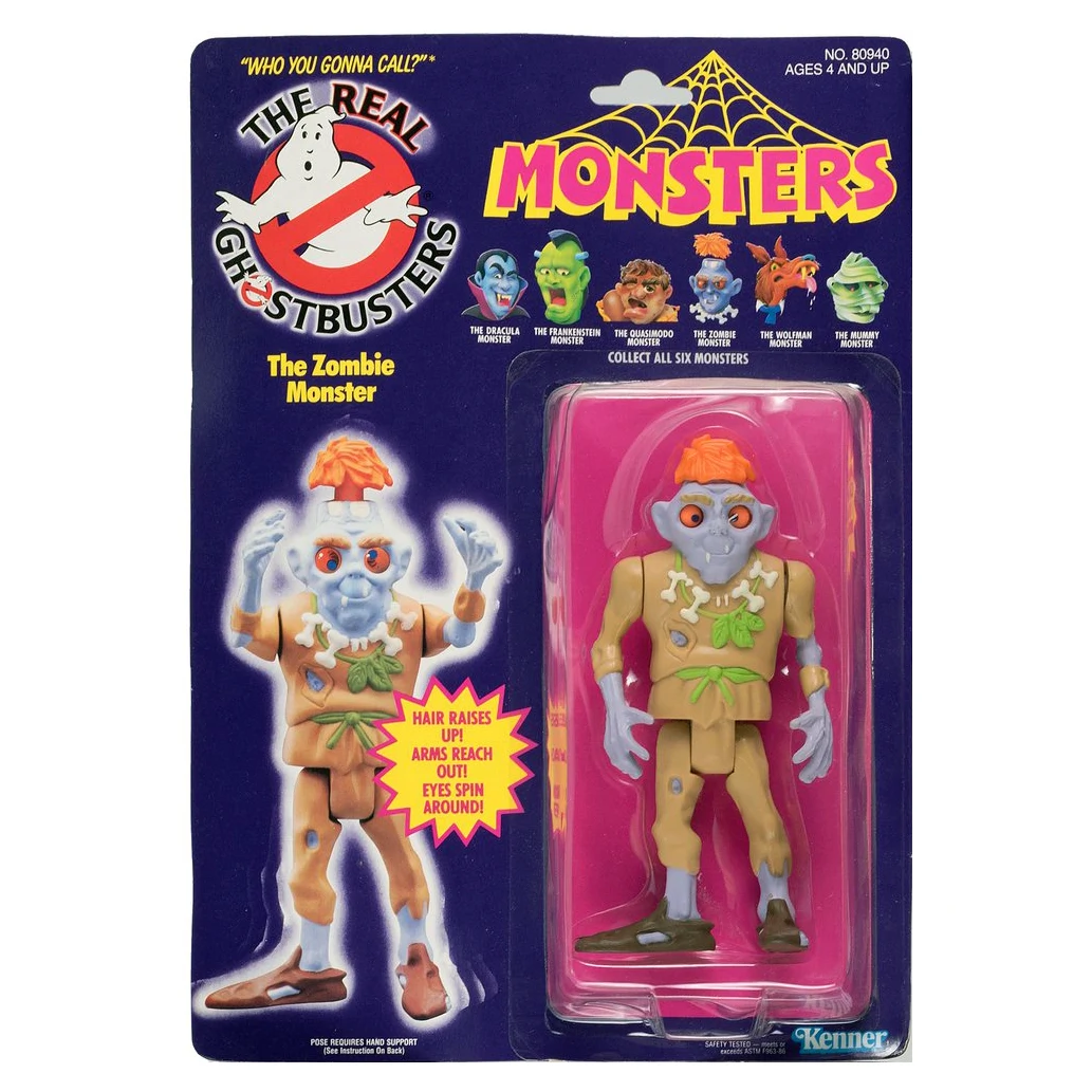 Monster Figure: The Zombie Monster an action figure which is part of Kenners The Real Ghostbusters Toy Line's (Classic) Monsters set. The Monsters set also included Frankenstein, Mummy, Dracula, Quasimodo, and Wolfman. While not suggested in the materials, five of the six monsters appear to be based in part to Universal Monsters. Some promotions call the set "Classic" Monsters, however the cards say simply "Monsters".