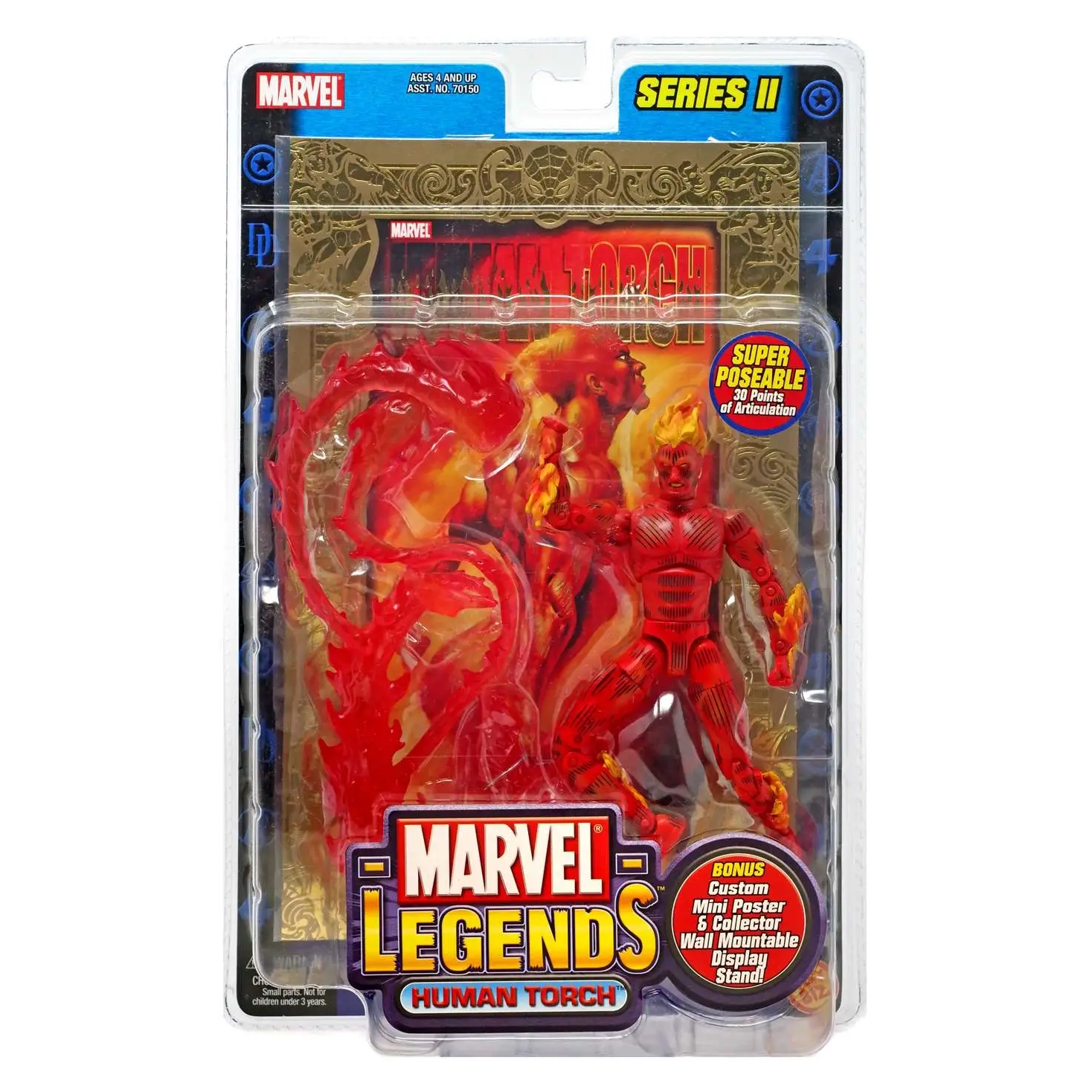 Pvc action figure with multiple articulation points. There is two version, one with 4 on Chest and one without 4.