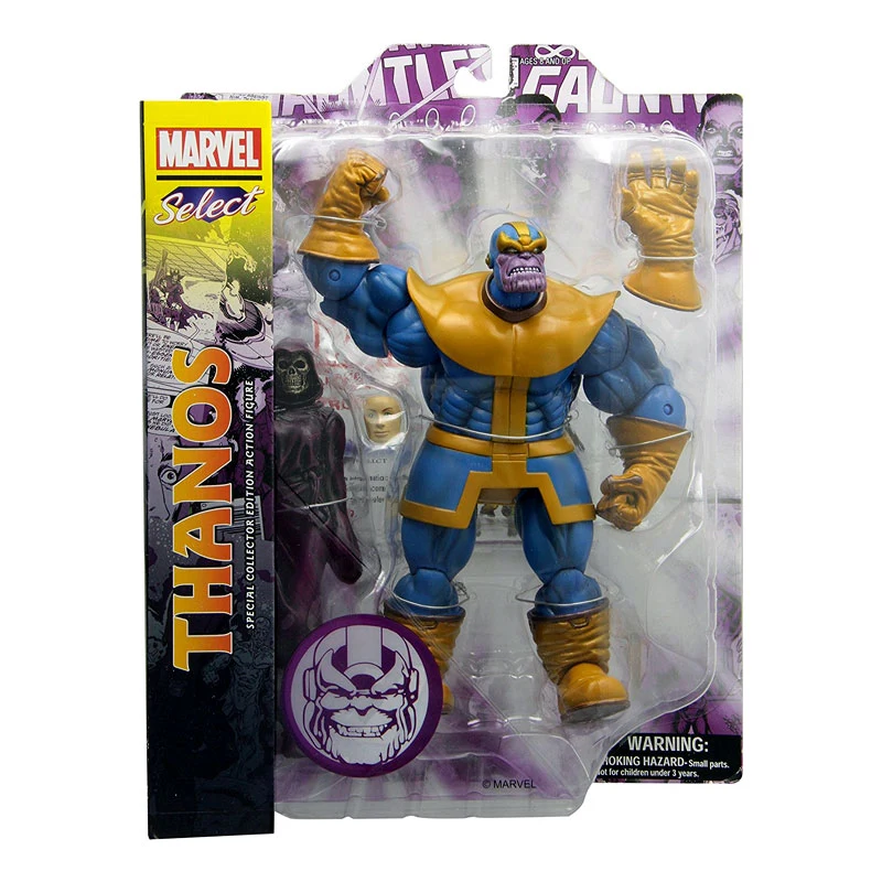 A diamond select release. With the cosmically-charged Infinity Gauntlet in his grasp, Thanos nearly wiped out every living being in the universe and would have succeeded if not for the intervention of some of the Marvel Universe’s greatest heroes. With 14 points of articulation, the Thanos figure is a detailed representation of the villainous legend, complete with a removable “Infinity Gauntlet” and a scale unarticulated death figure. Blister card packaging. A diamond select release. One of Marvel Comics' iconic villains. Deluxe packaging.