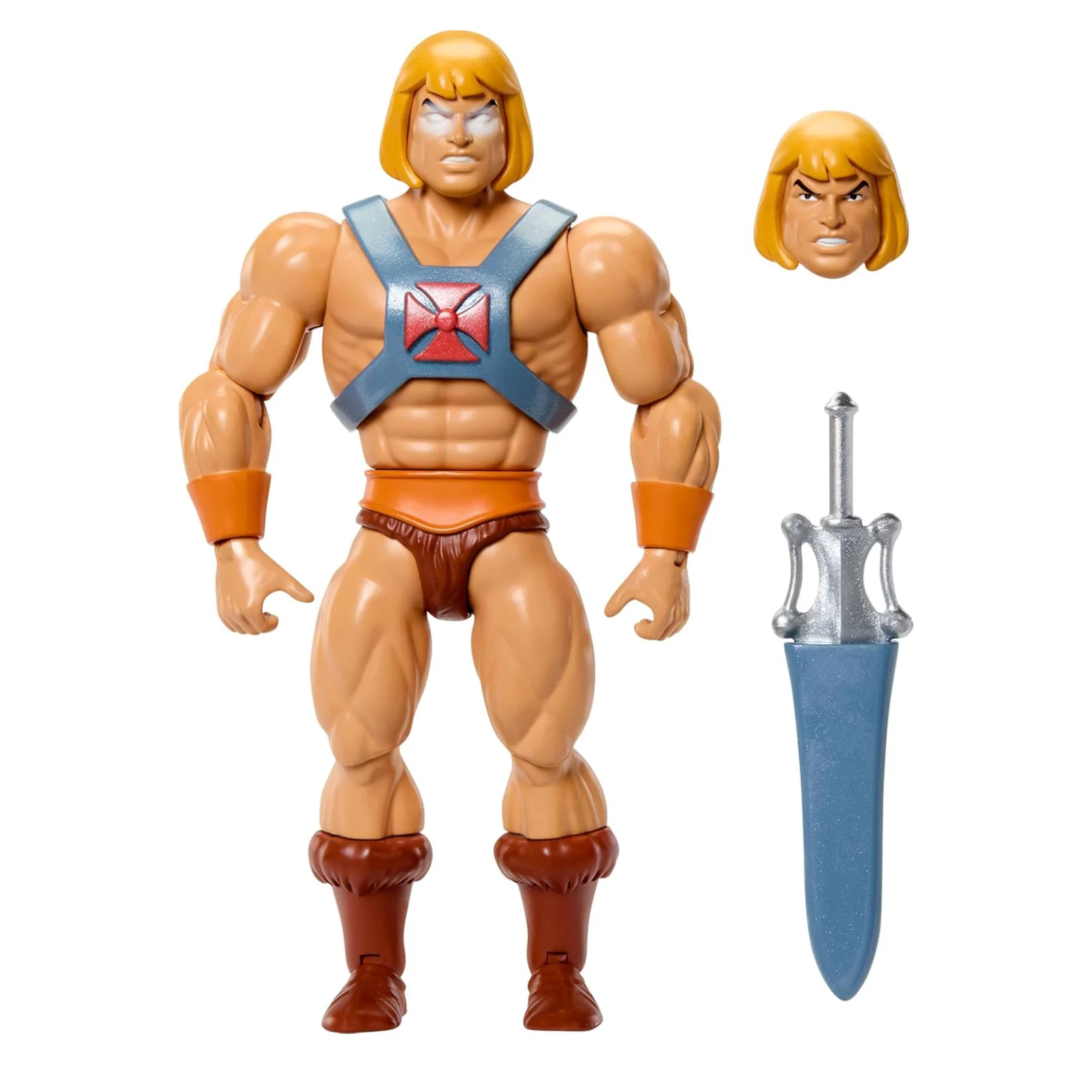 This Masters of the Universe Origins Faker action figure from the Cartoon Collection is inspired by the original He-Man and the Masters of the Universe TV series from the '80s. The He-Man imitator is designed with a vintage look at 5.5-inch scale, but with the modern posability of 16 movable joints. This MOTU toy Faker is inspired by the "The Shaping Staff" episode and has glowing eyes and a Power Sword accessory. This figure also comes with a removable harness and an alternate head and a mini-comic is included for story context.