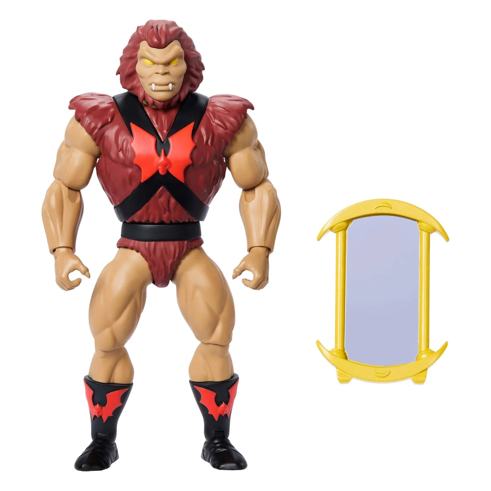 This MOTU Origins Grizzlor action figure joins the Cartoon Collection, inspired by the original He-Man and the Masters of the Universe TV series from the ’80s. The hairy henchman of the Evil Horde has a vintage look at 5.5-inch scale, but with the modern posability of 16 movable joints. This MOTU villain comes with a Moon Mirror accessory inspired by the “He Ain’t Heavy” episode. A mini-comic is included for story context. Packaging now features thicker cardboard for in-pack display.