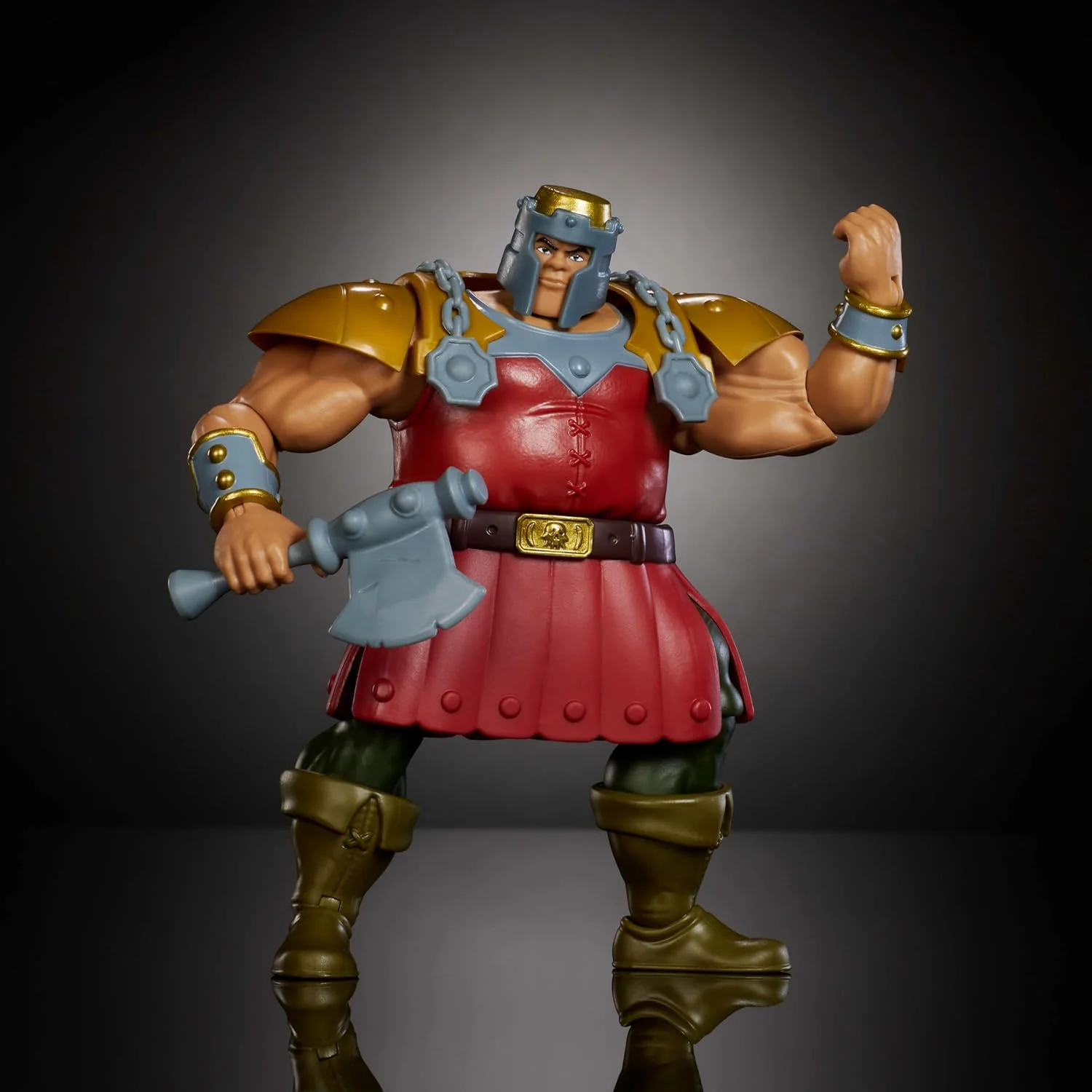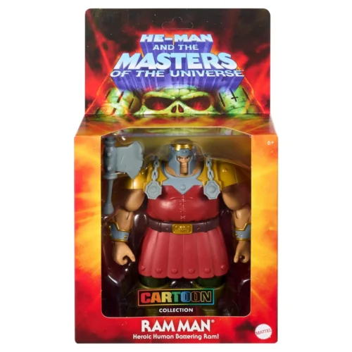 This Origins Cartoon Collection Ram Man deluxe action figure is inspired by the well-loved MOTU 200X action figure line, itself inspired by the He-Man and the Masters of the Universe TV series. This re-imagined version of Ram Man from the vintage toy line released in 2002 has retro style but modern posability. As a deluxe figure, he's larger than the usual 5.5-inch Origins figures. This wide-stanced figure looks ready to bust out of the package. The human battering ram comes with his signature axe as well as a collector card.