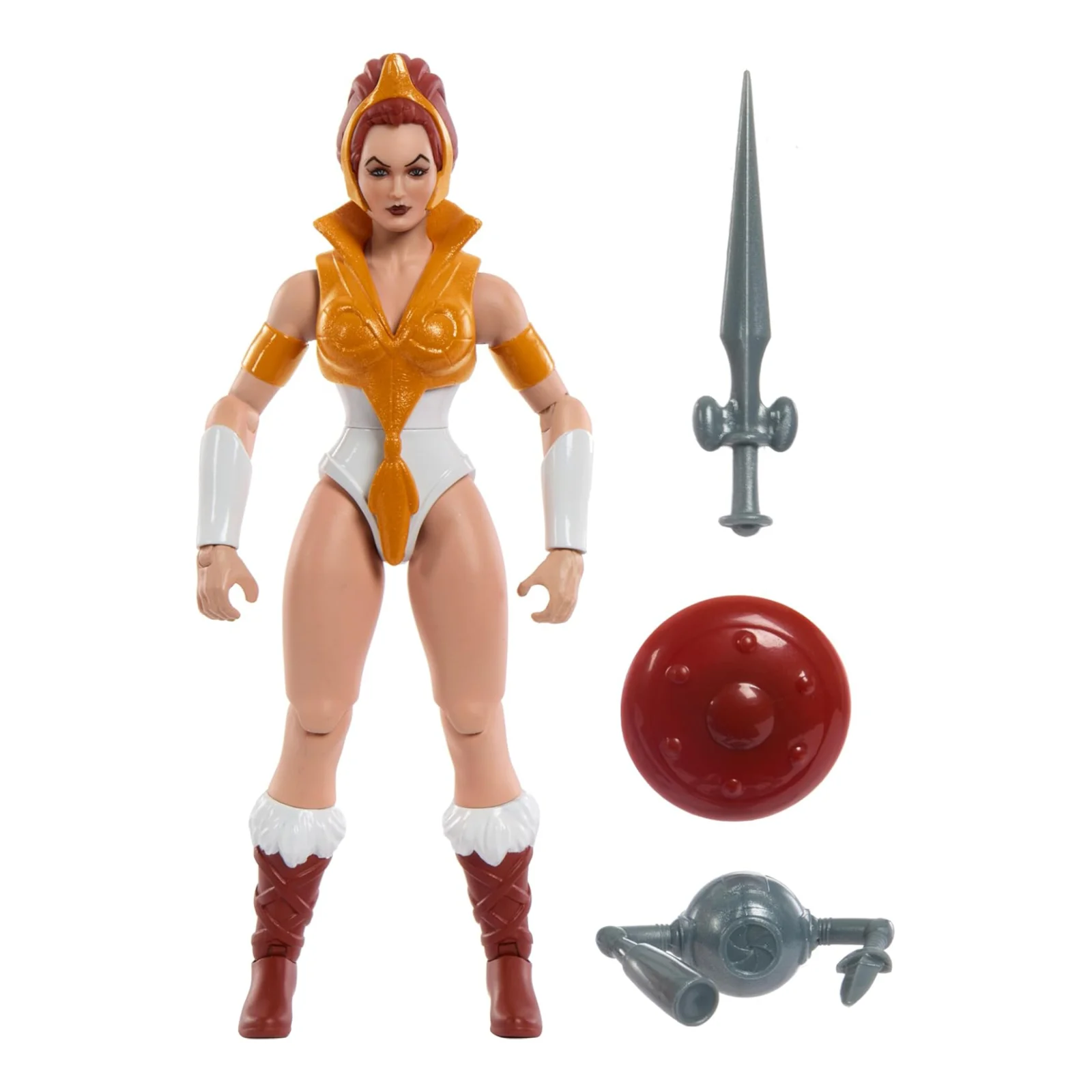 This MOTU Origins Teela figure is inspired by the original cartoons from the '80s at 5.5-inch scale but with the modern posability provided by 16 articulated joints. This Masters of the Universe toy of the heroic guardian of Castle Grayskull can match poses from the 1980s content or make all new action moves.