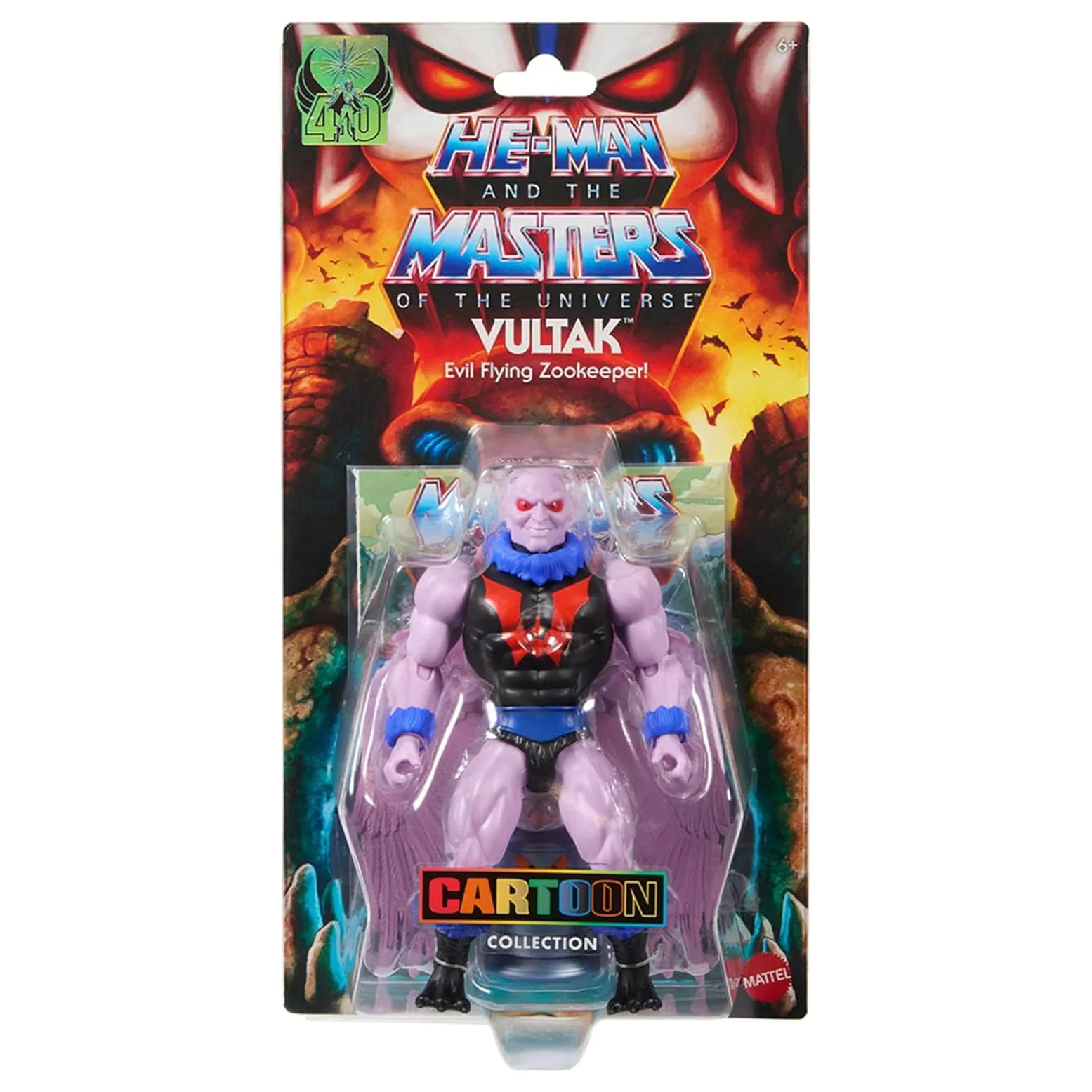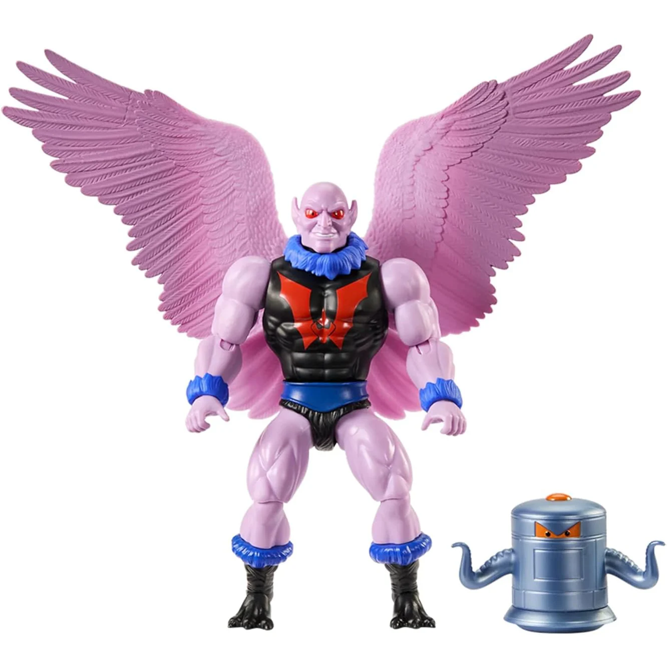To celebrate the 40th anniversary of She-Ra: Princess of Power, we’ve brought Vultak to the Origins line. Introduced in 1985 as Hordak’s cowardly zookeeper, our bumbling fool sneers with a classic cartoon look, and features detachable wings and taloned feet that enable him to patrol Etheria’s skies and capture the innocent creatures of the Forest of Freedom. An accompanying metallic Zootron robot serves as a prison guard, keeping stock of all Hordak’s specimens in the Fright Zone.