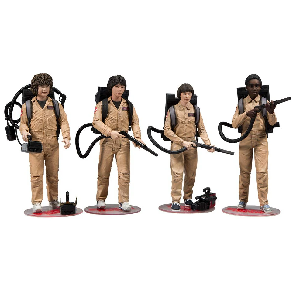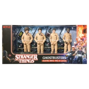 14+ points of articulation. Dustin includes the iconic Ghost Trap with Dart and Proton Pack. Will includes detailed TMP Video Camera, iconic Proton Pack and jumpsuit. Lucas includes iconic Proton Pack and jumpsuit. Mike includes iconic Proton Pack and jumpsuit. All Proton Packs are removable.