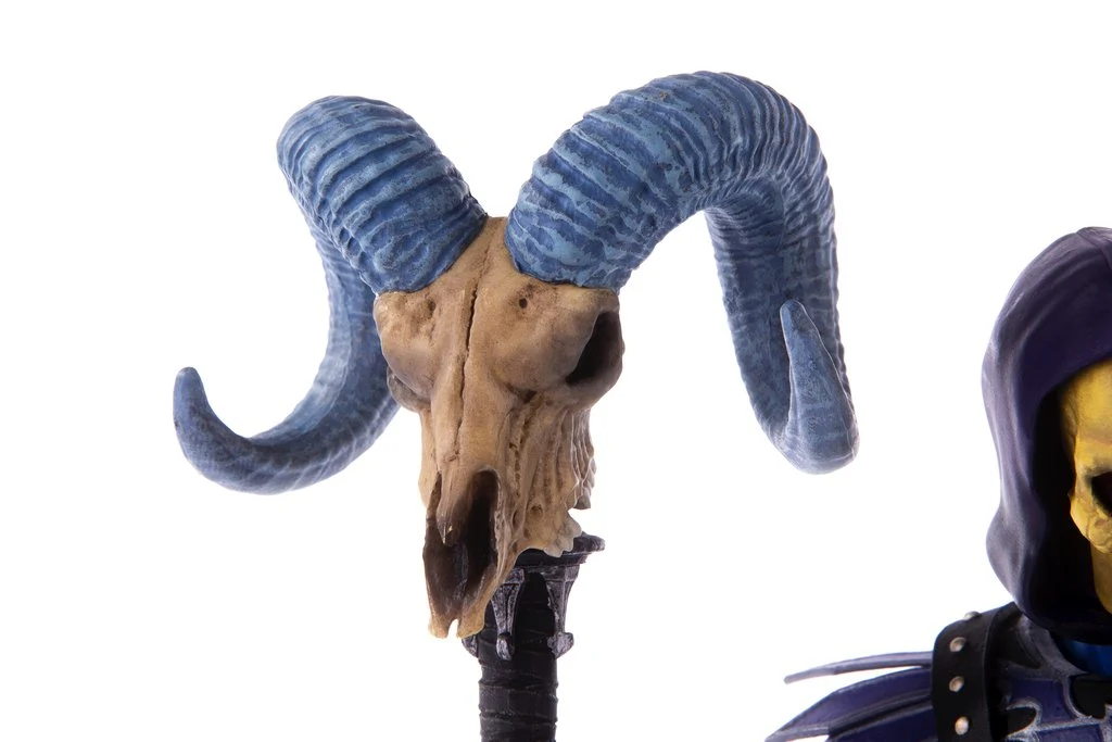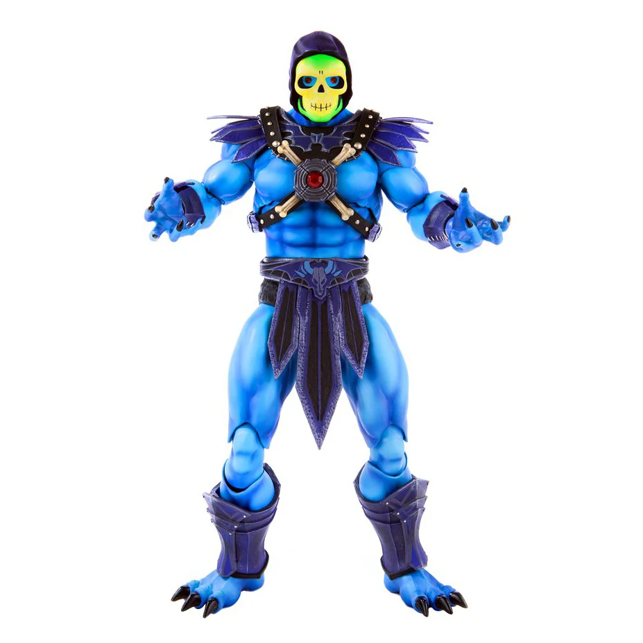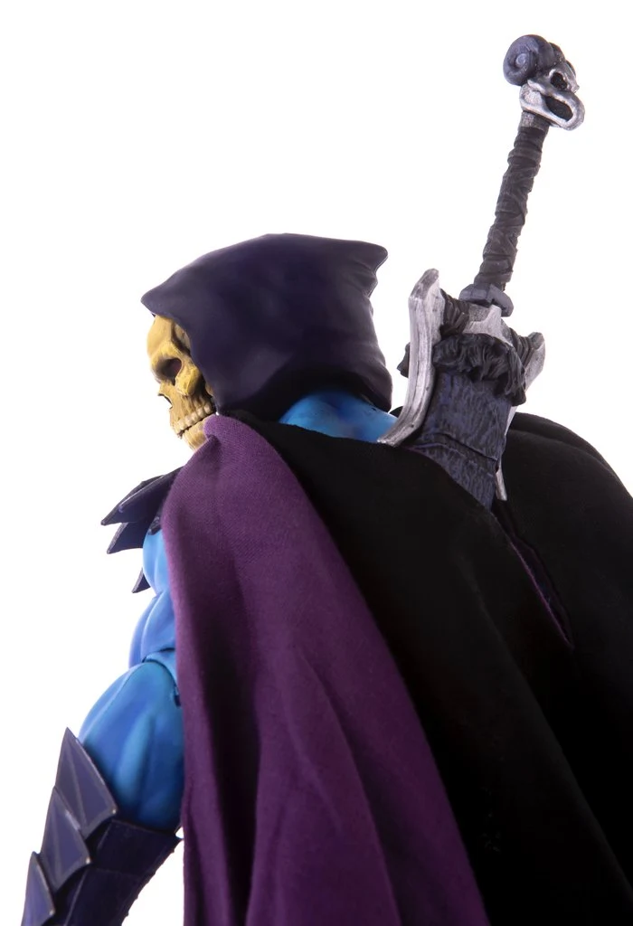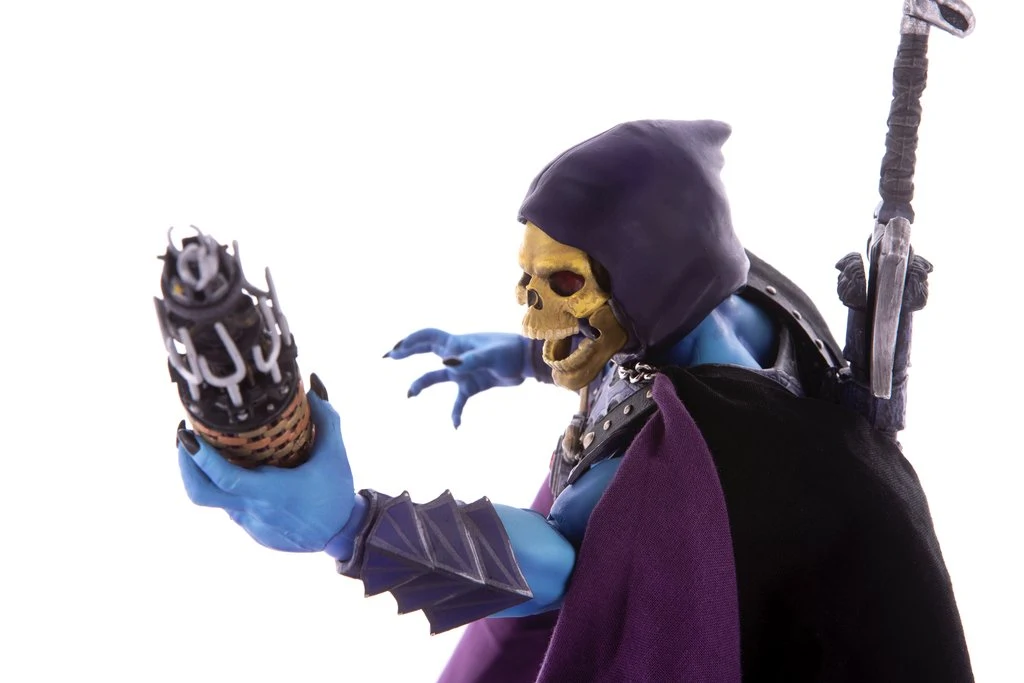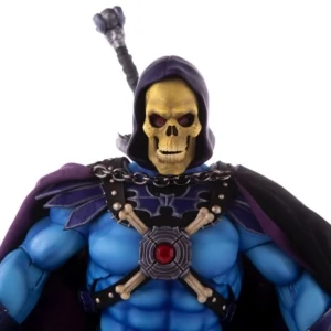 You must possess all, or posses nothing! Mondo is proud to bring you the second in our Masters of the Universe 1/6 scale figure line- Skeletor! Featuring over 30 points of articulation, reversible fabric cape, and a lot of accessories, Skeletor is the most evil figure this side of Snake Mountain! Also Available as Mondo Exclusive: features the Cosmic Key as a bonus accessory.
