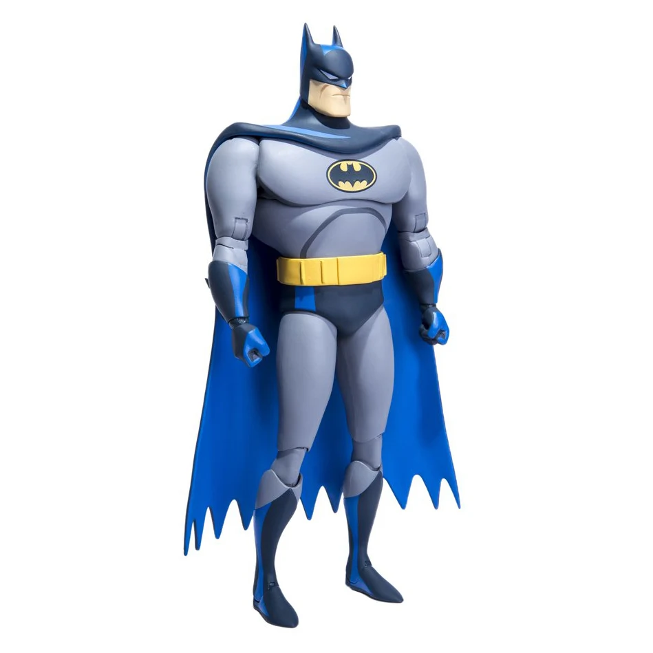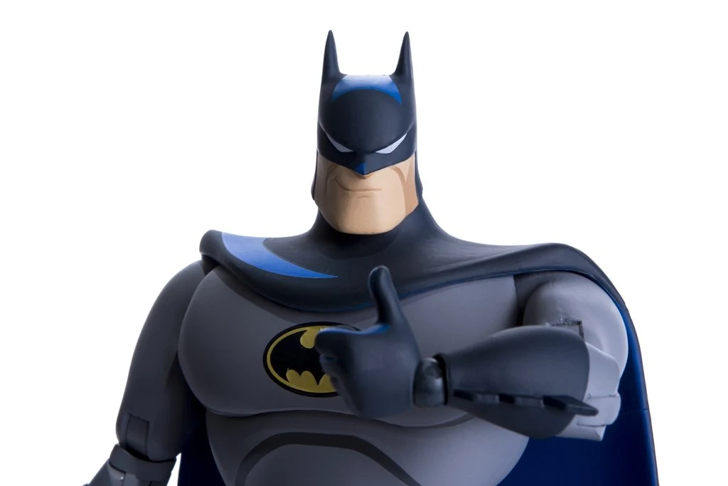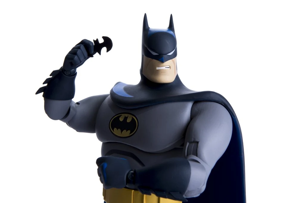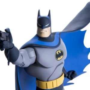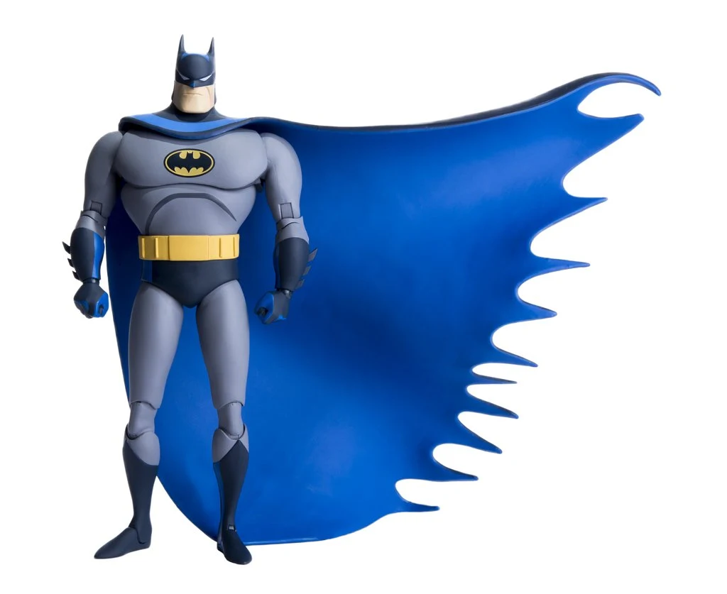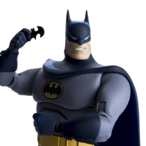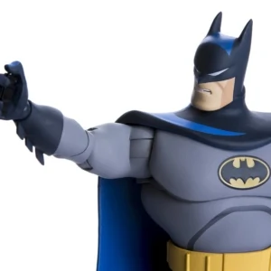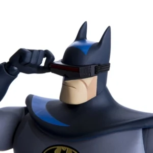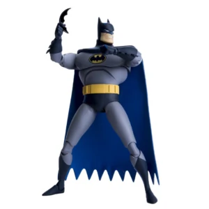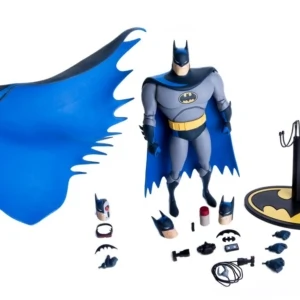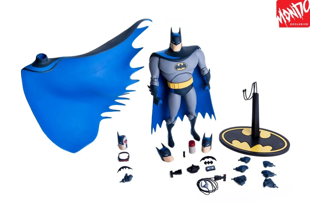 Based on the seminal BATMAN: THE ANIMATED SERIES, the Batman 1/6 Scale Figure stays true to the animated classic. Features approximately 30 points of articulation, multiple switch-out hands, heads, accessories, and a Bat Symbol figure stand. The Mondo Deluxe Exclusive features a switch-out wind-swept cape, goggles, unique "Thumbs-Up of Bat Approval" hand, unique batarang, and a switch-out H.A.R.D.A.C. head!
