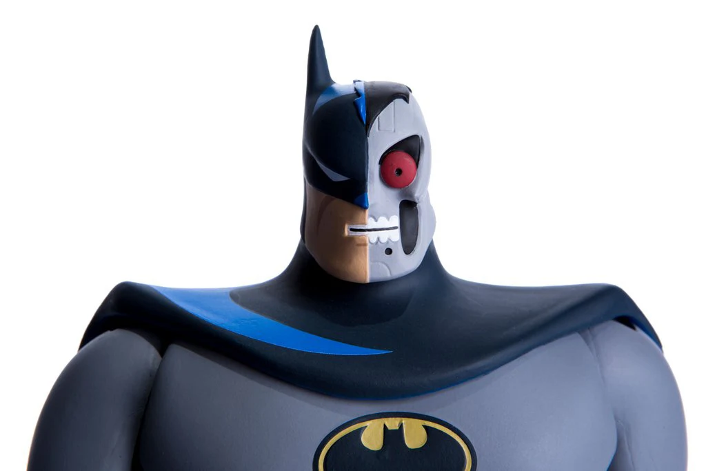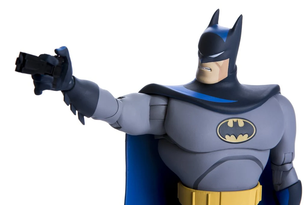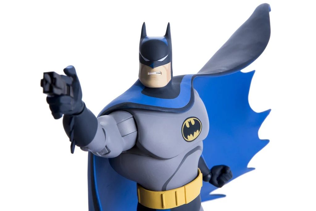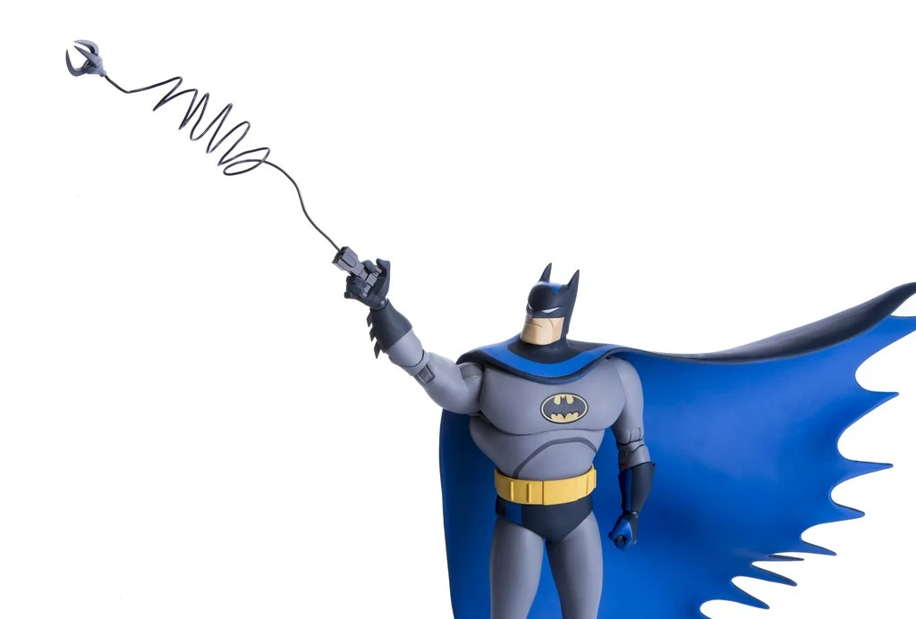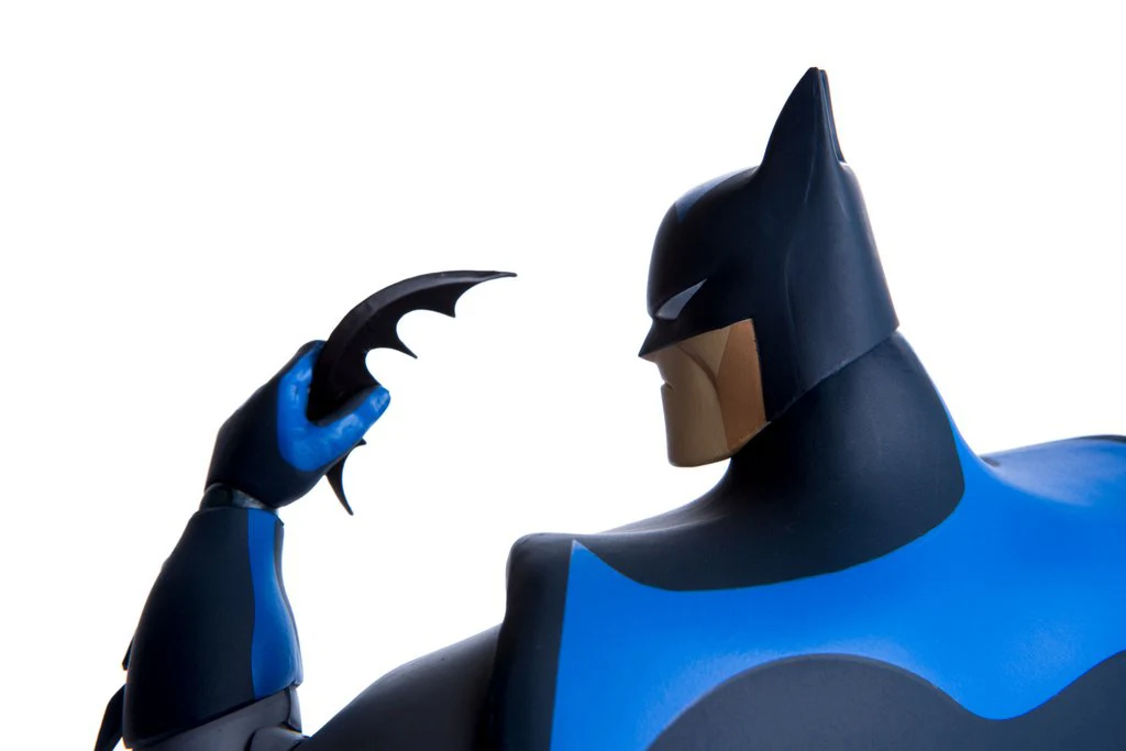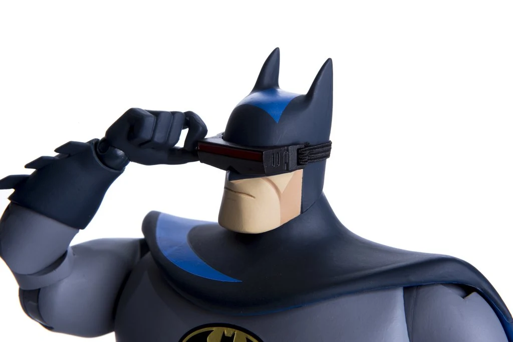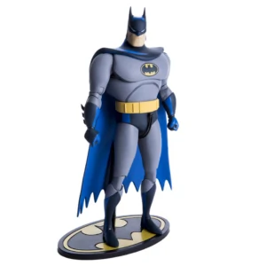 Based on the seminal BATMAN: THE ANIMATED SERIES, the Batman 1/6 Scale Figure stays true to the animated classic. Features approximately 30 points of articulation, multiple switch-out hands, heads, accessories, and a Bat Symbol figure stand. The Mondo Deluxe Exclusive features a switch-out wind-swept cape, goggles, unique "Thumbs-Up of Bat Approval" hand, unique batarang, and a switch-out H.A.R.D.A.C. head!