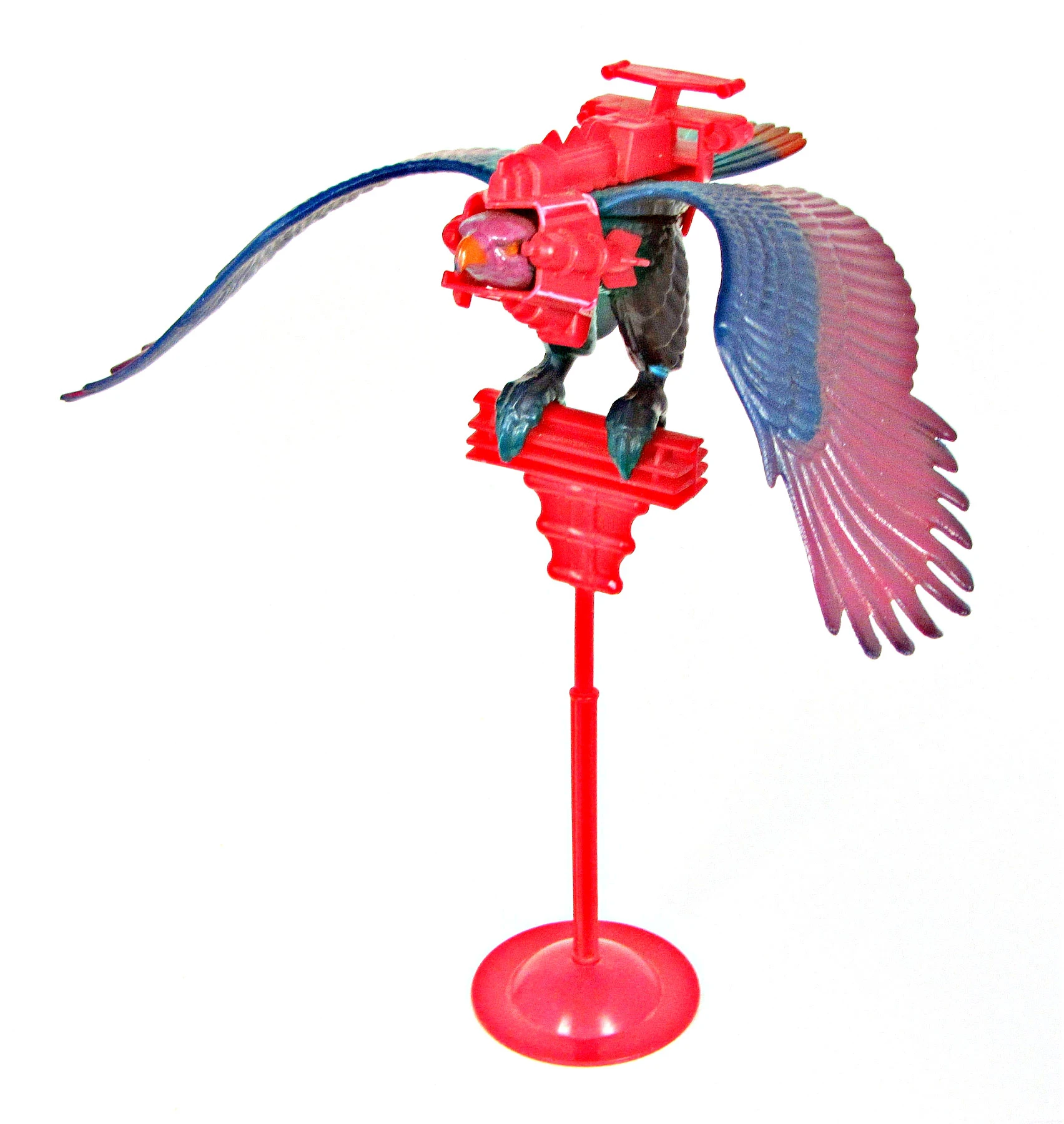 Has wings that flap. Original mould was re-utilized from Mattel’s Big Jim Eagle set (1972/1973).