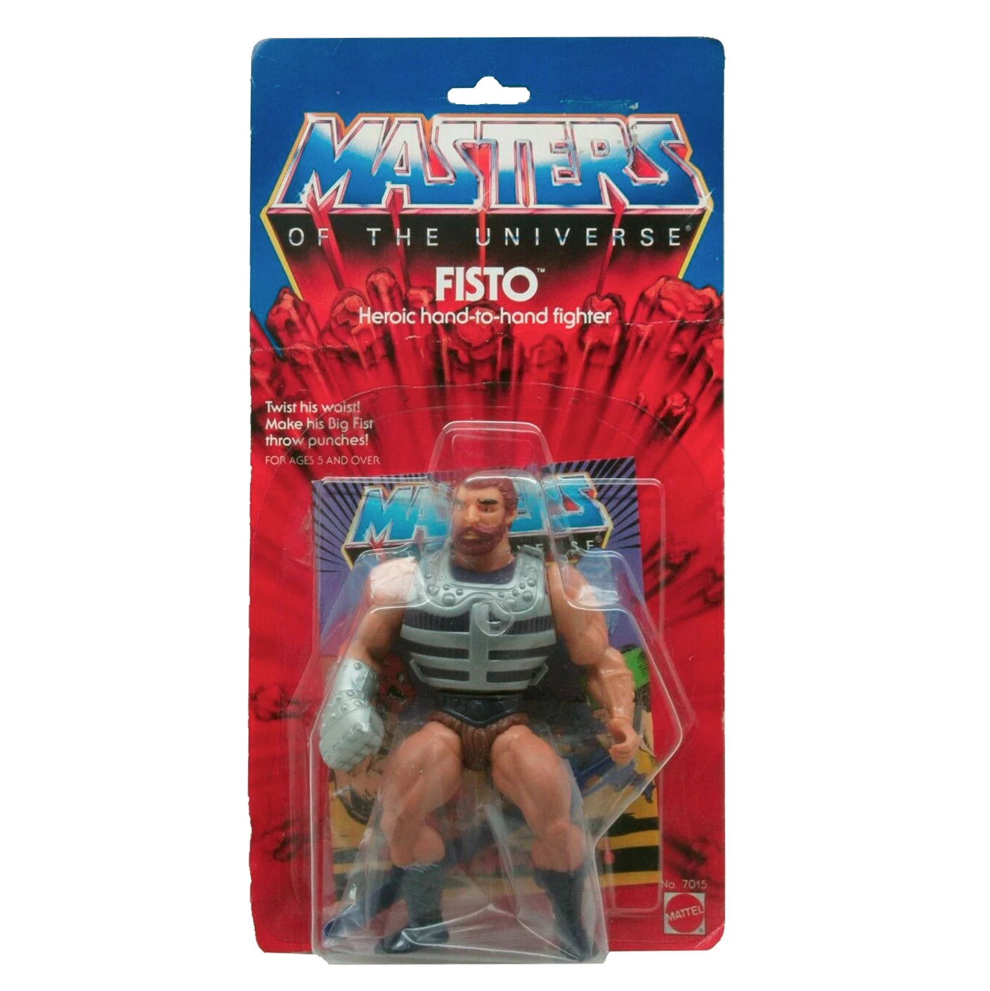 Twist waist & power punch action. The right arm is spring-loaded with big fist & knuckles.